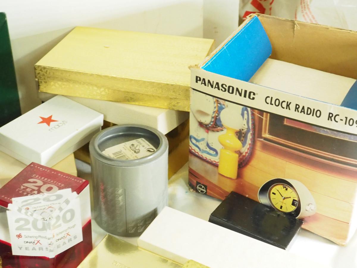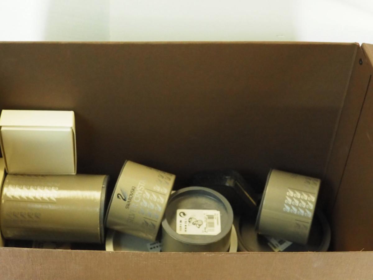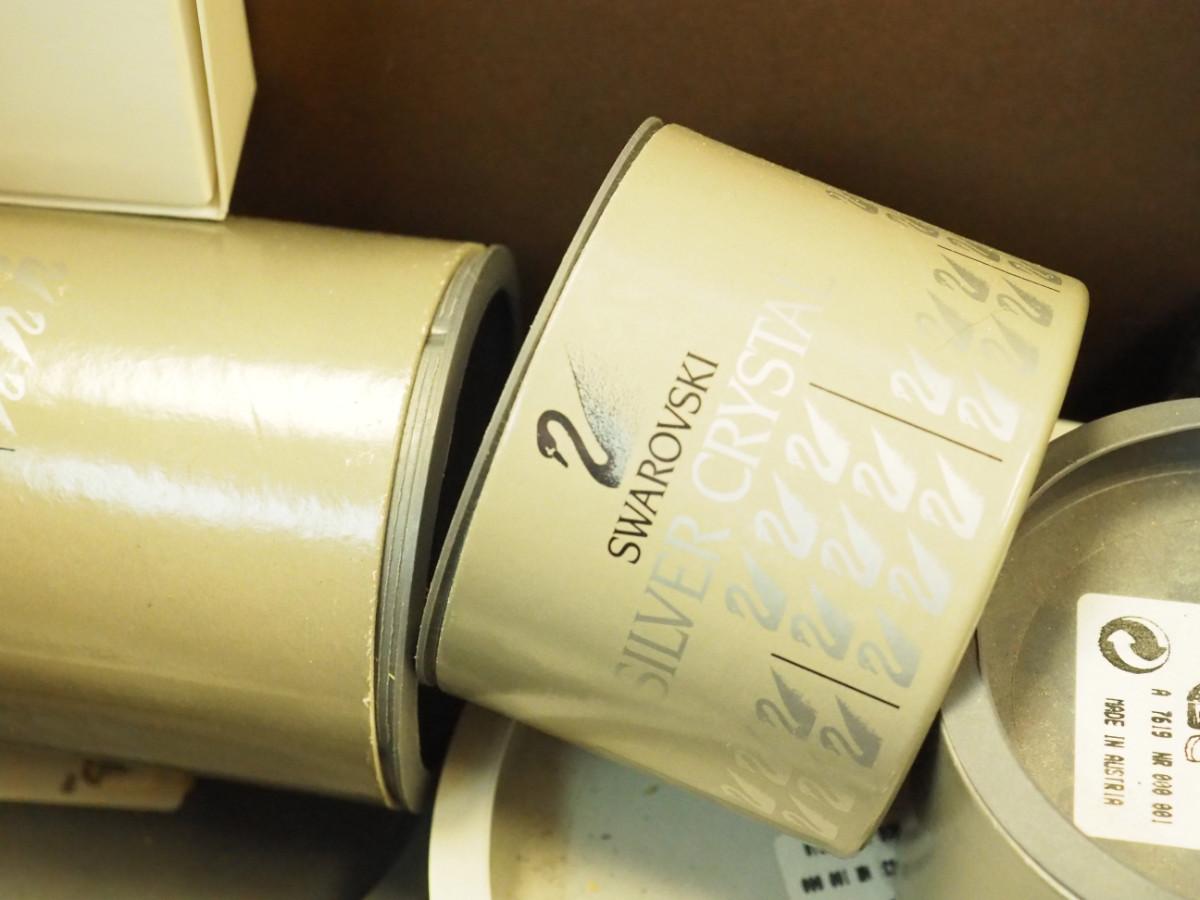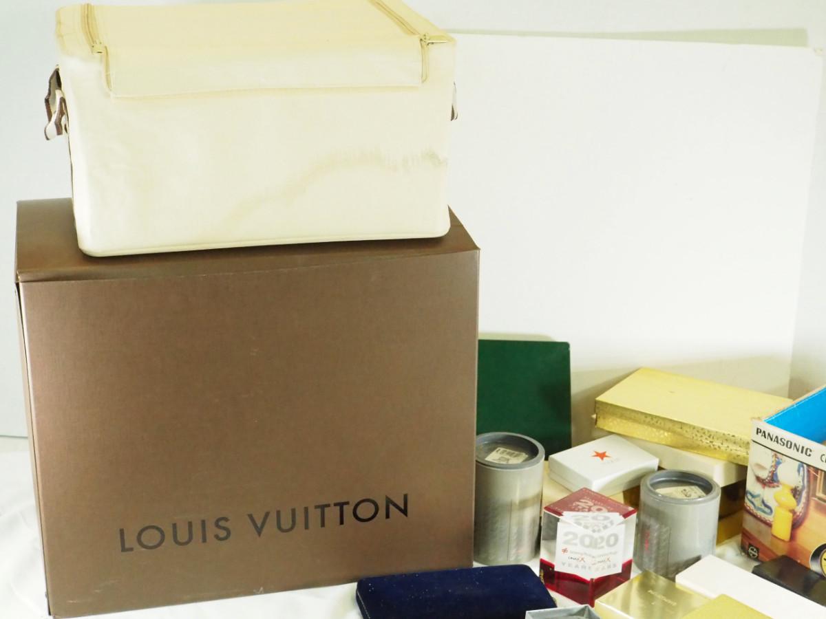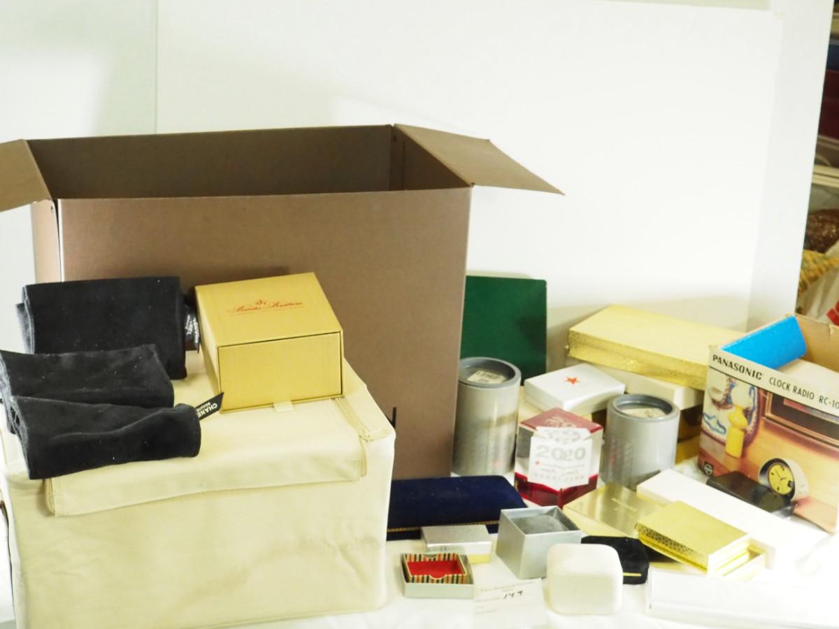 Lot 149- Empty designer boxes, Crystal boxes, jewelry clam shells, canvas box, Louis Vuitton brown box.