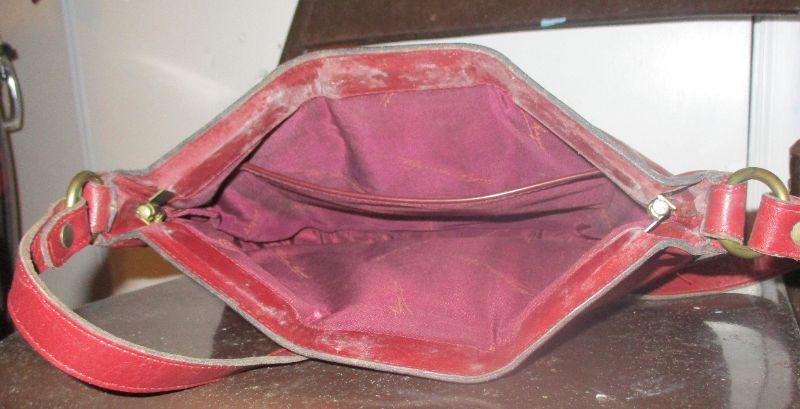 This purse doesn't look like it was every used. The spots on the inside edge were on the outside and we were able to clean them off with a gentle cleanser and leather cleaner, so it is cleanable. I don't know if the metal piece on the backside is cleanable. Feels like leather, but I can't find a tag inside to confirm that.