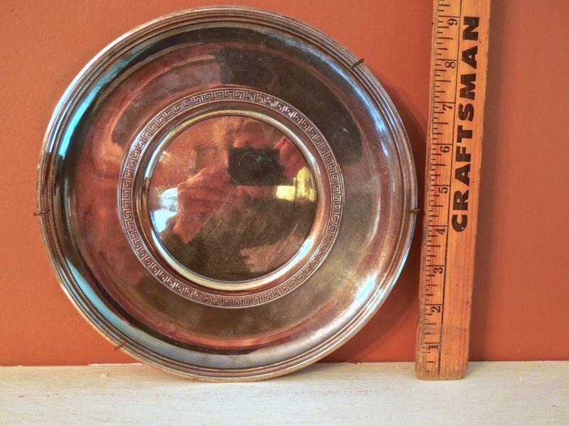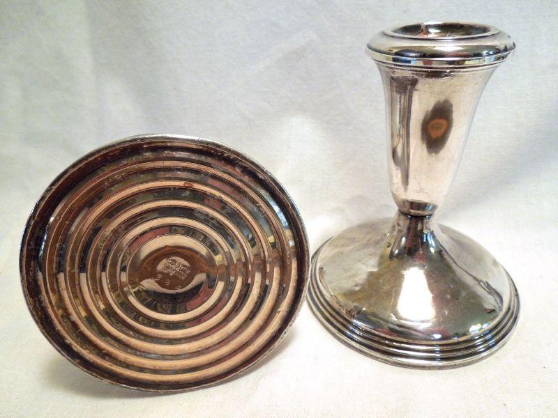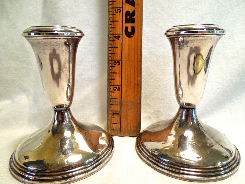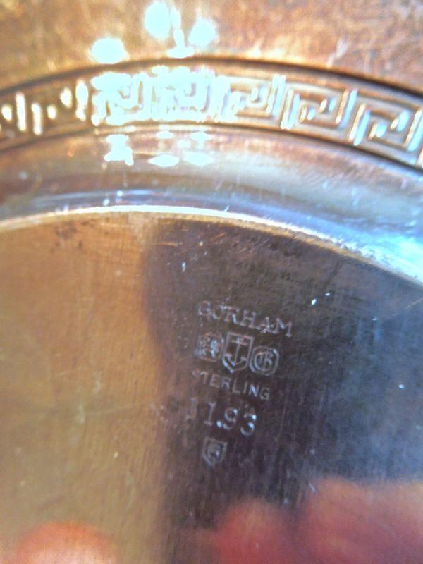 1000 grams or 35 oz of sterling silver (not silver plated) serving pieces and candes sticks. A round serving plate by Gorham; Empire candle sticks; Fisher round plate;