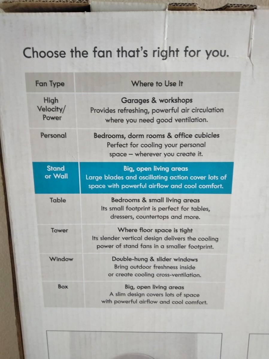 KENMORE COMFORT 16" STAND FAN ITEM APPEARS NEW IN THE BOX.