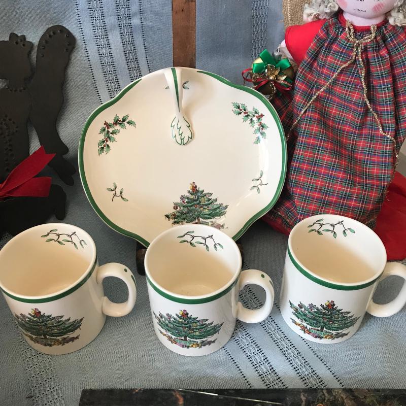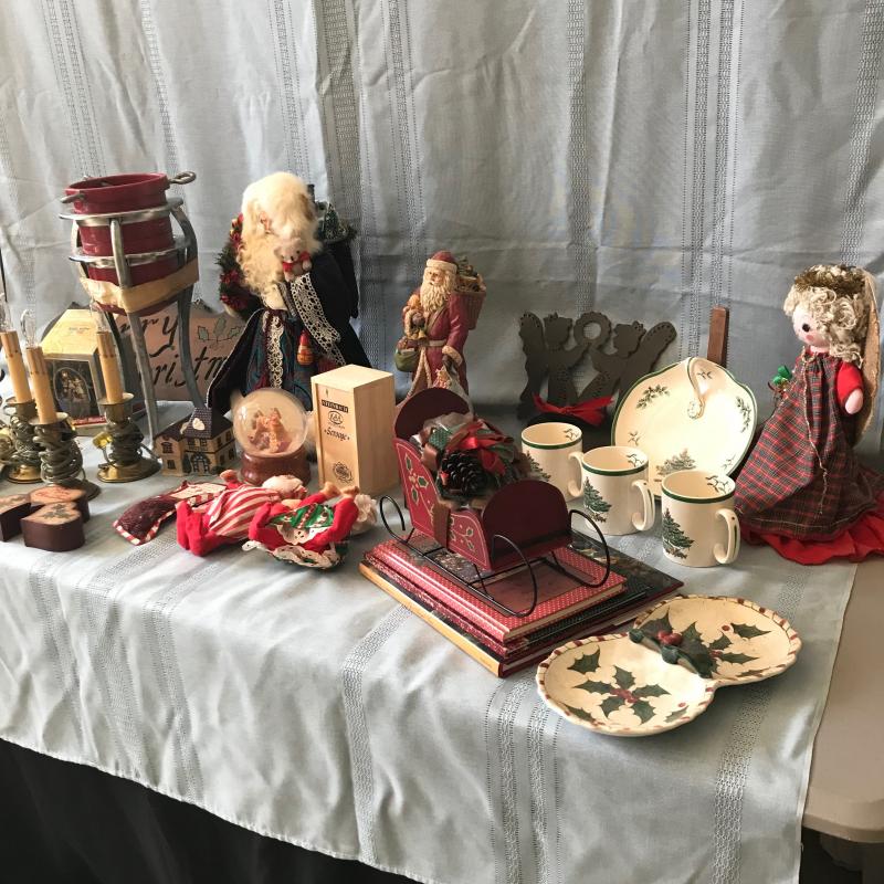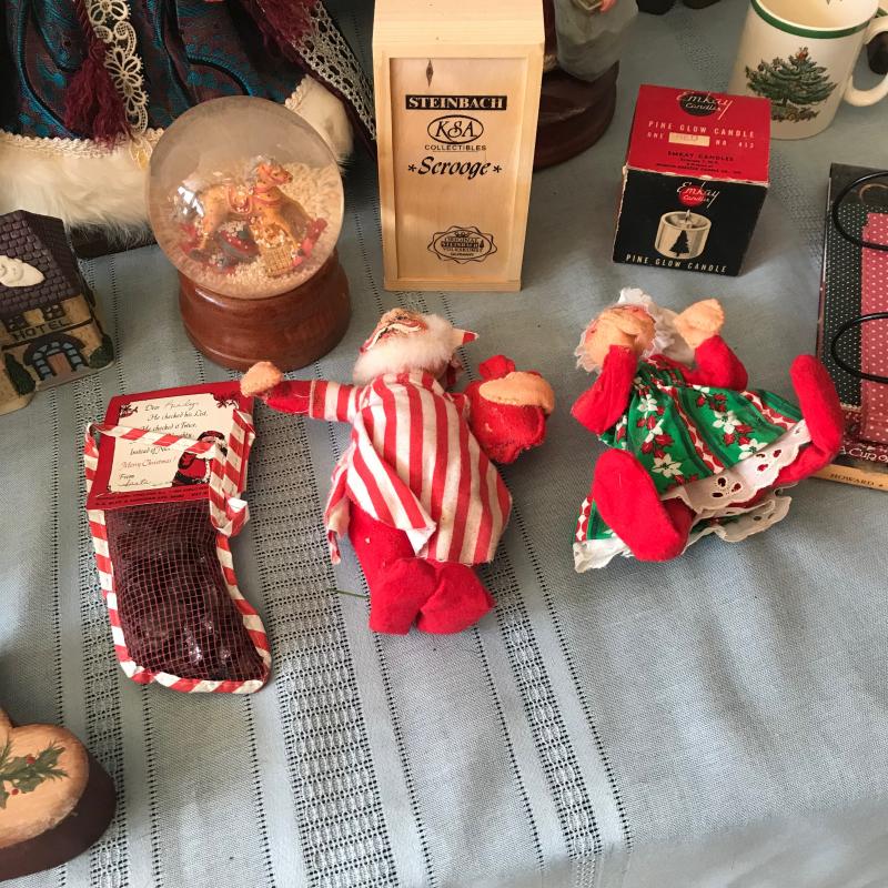Lot includes a Special Edition Kensinger Studio Santa from 1993. Also includes a music box santa, snow globe, heavy duty Ludwig bells, Spode mugs and dish and more. See pictures. No shipping. Local pick up only.