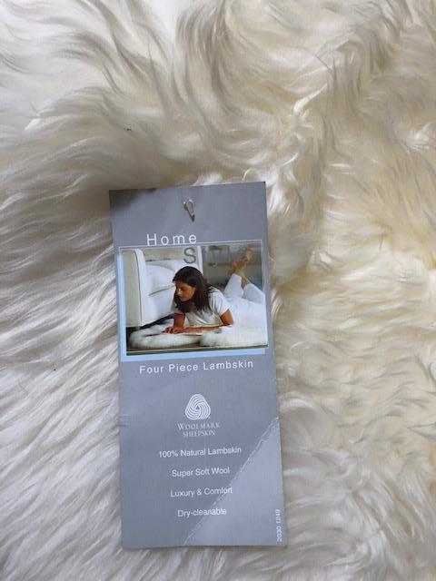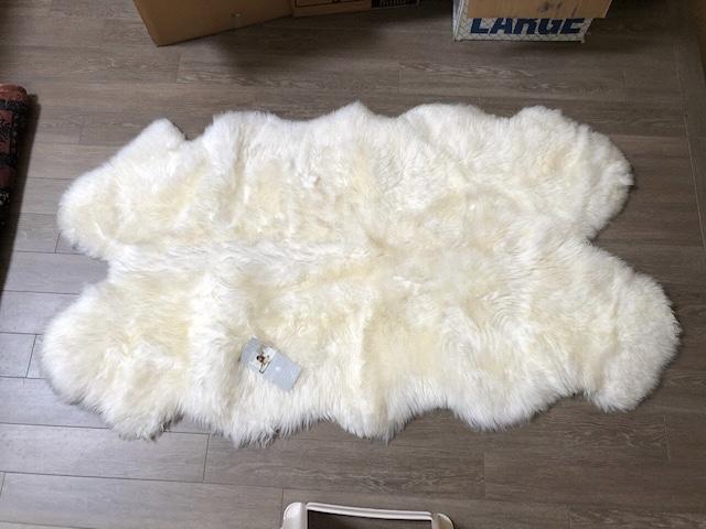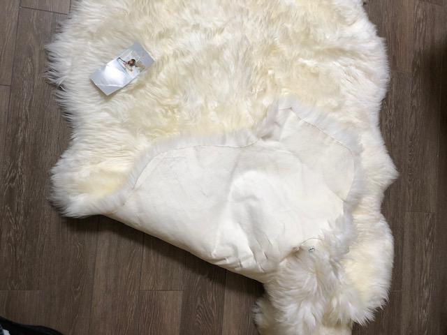 Lot 149U. Lamb skin rug, genuine leather, 4 pelts in one, new, approximately 5’ x 3’ - - $75
