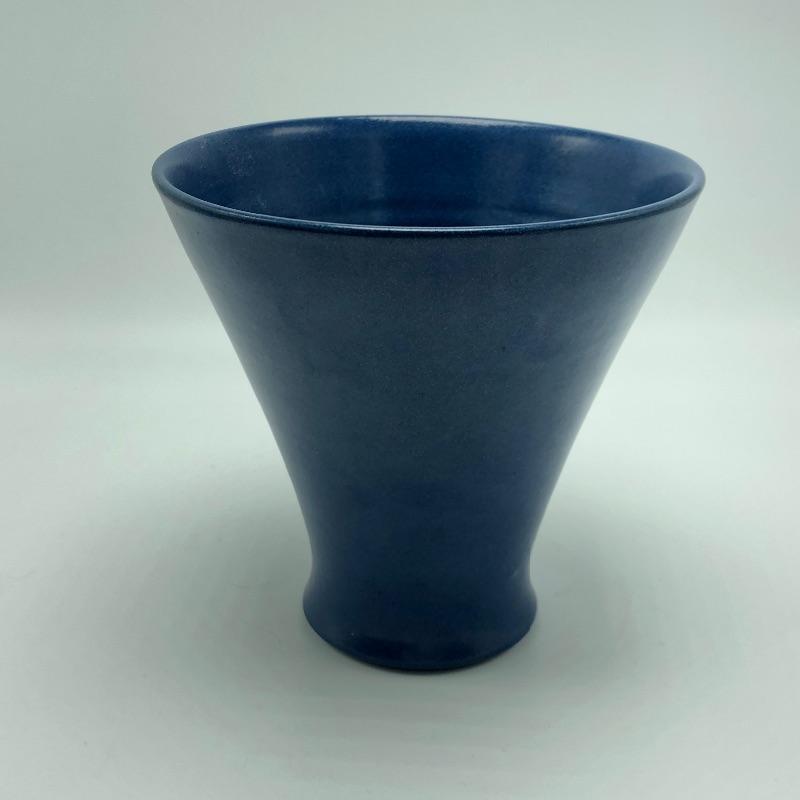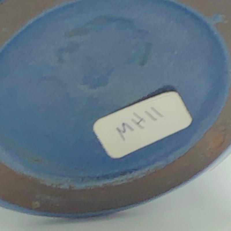 Blue vase is Marblehead pottery. Has a faint stamp on the bottom and an old sticker on it. This is a simple beautifully made piece.