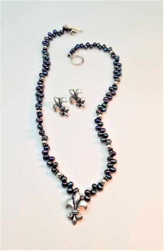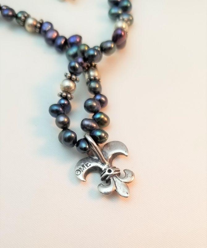 Lot #149 Mignon Faget Natural Pearl Necklace with Sterling Fleur di Lis - Sterling FDL earrings