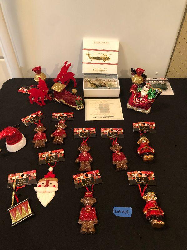 Lot 149 - New Christmas Ornaments including FAO Schwartz and White House