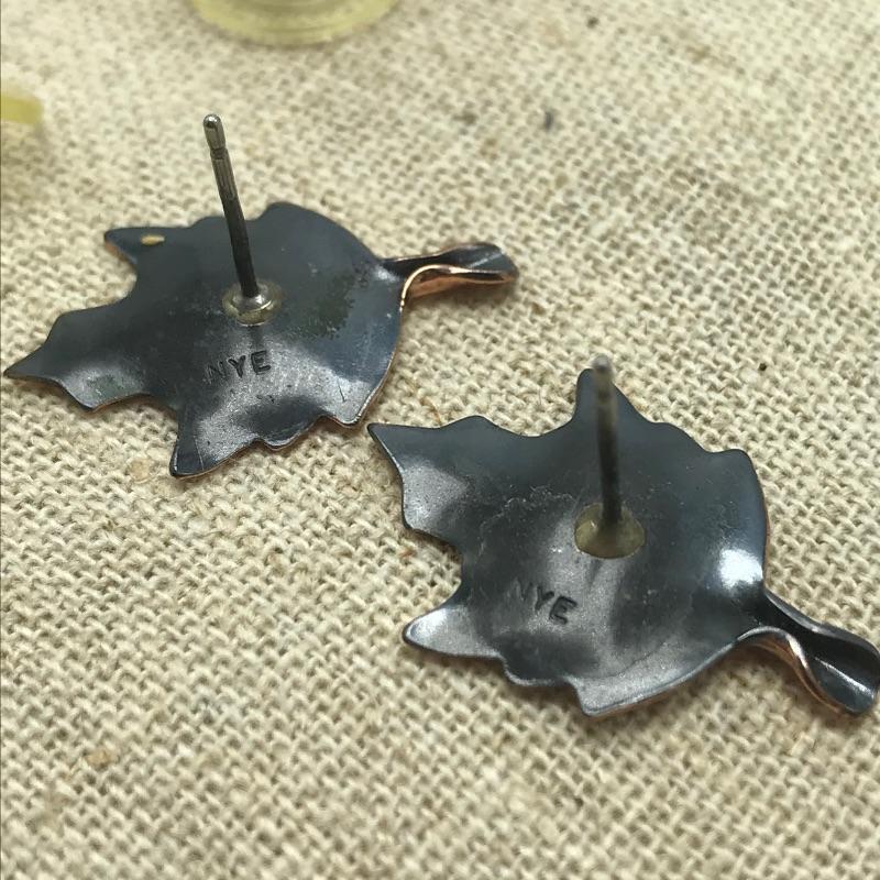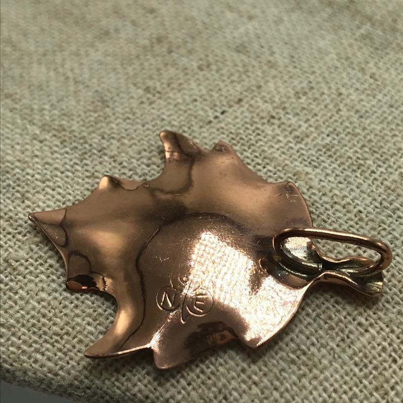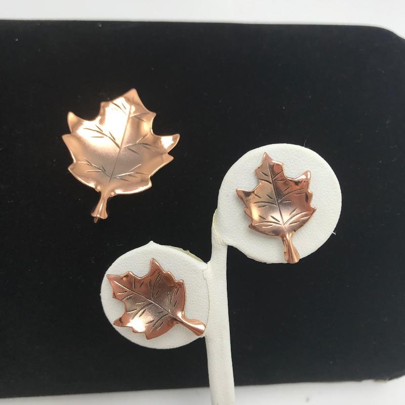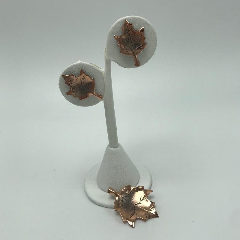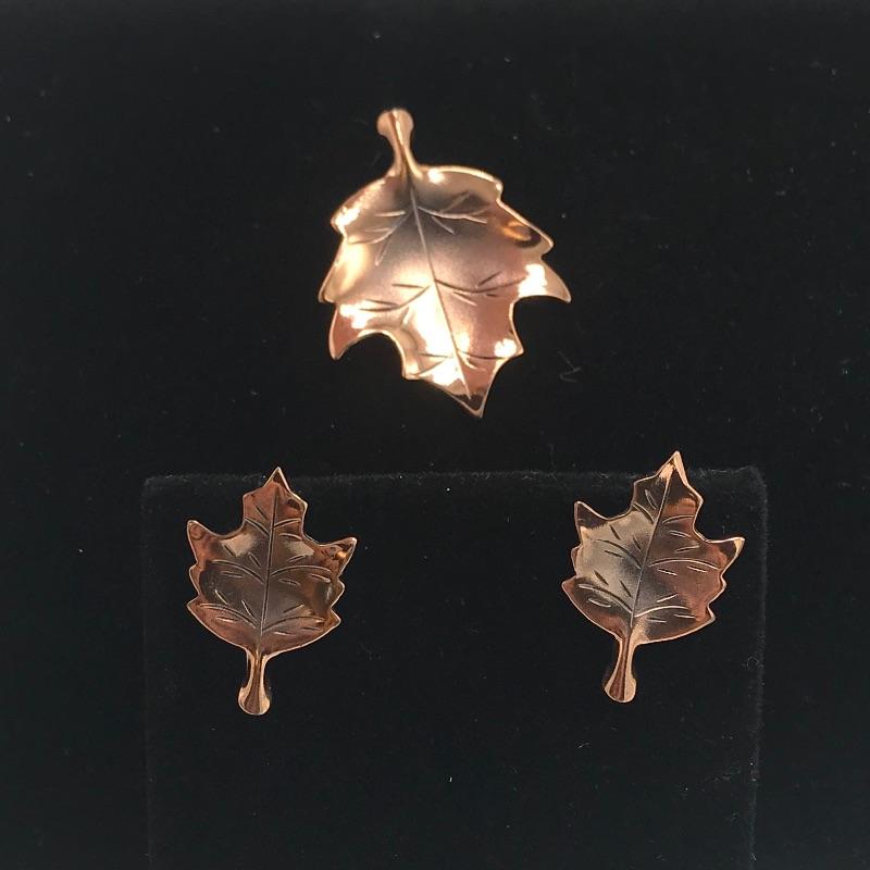 Local artist Stuart Nye Maple Leaf pendant and earring set. Pieces are copper colored and non-magnetic.