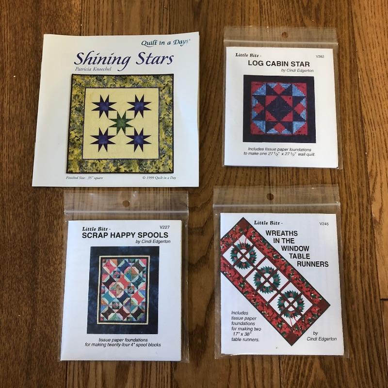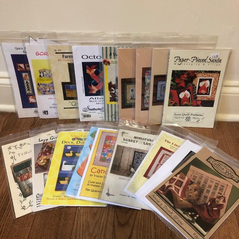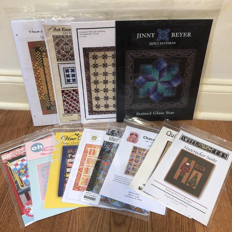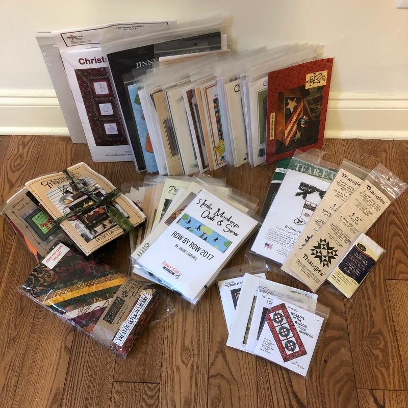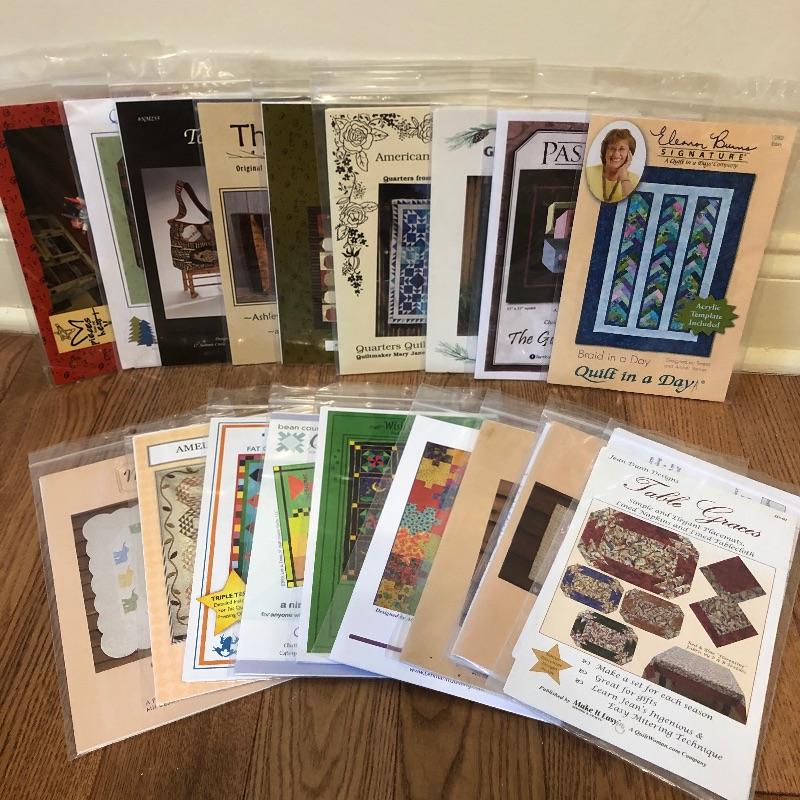 This lot includes a huge variety of quilting patterns, quilting sets, bag patterns, and more. This lot provides many different patterns for many different pieces. Shipping available.