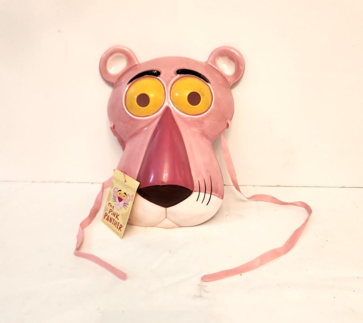 Scarce, highly collectible ceramic Pink Panther mask. has tag, made 1981. Japan sticker, vintage condition. 8" tall.