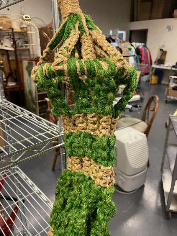 Plant Hanger in Green and Jute Rope.