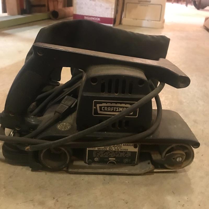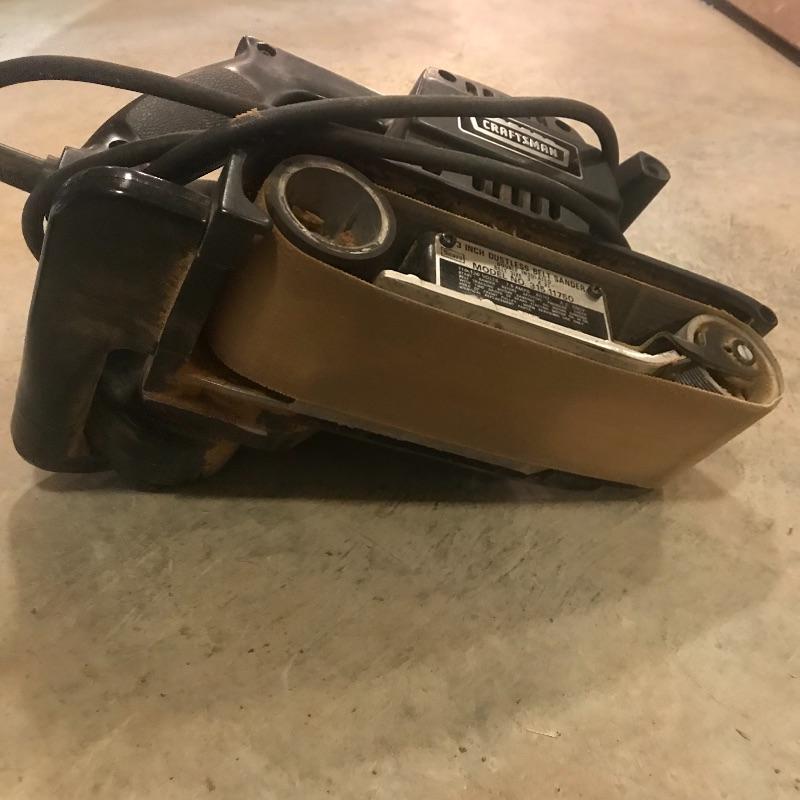 Craftsman 3” Dustless Belt Sander with extra Sanding belts. B&D Quantum Sander and pads. Lots of sandpaper included. Local pick up only.