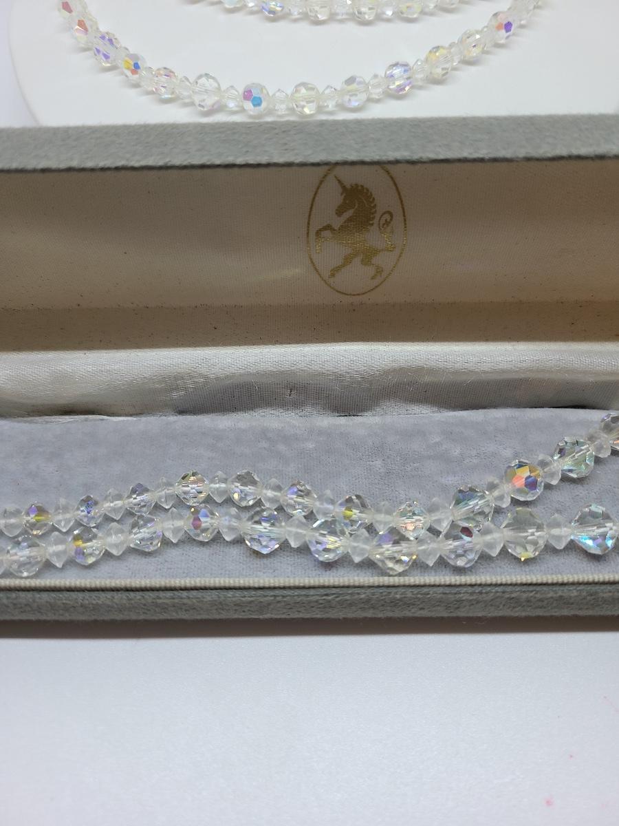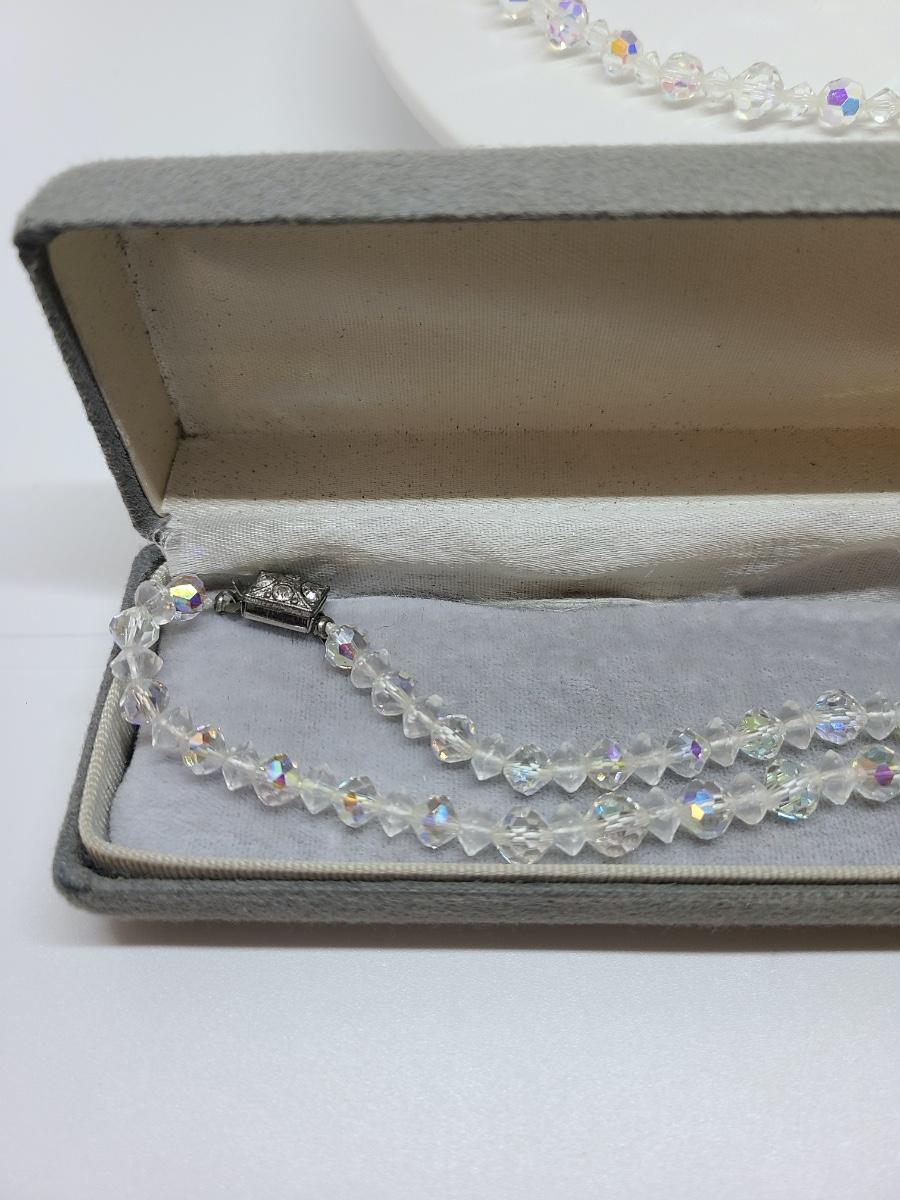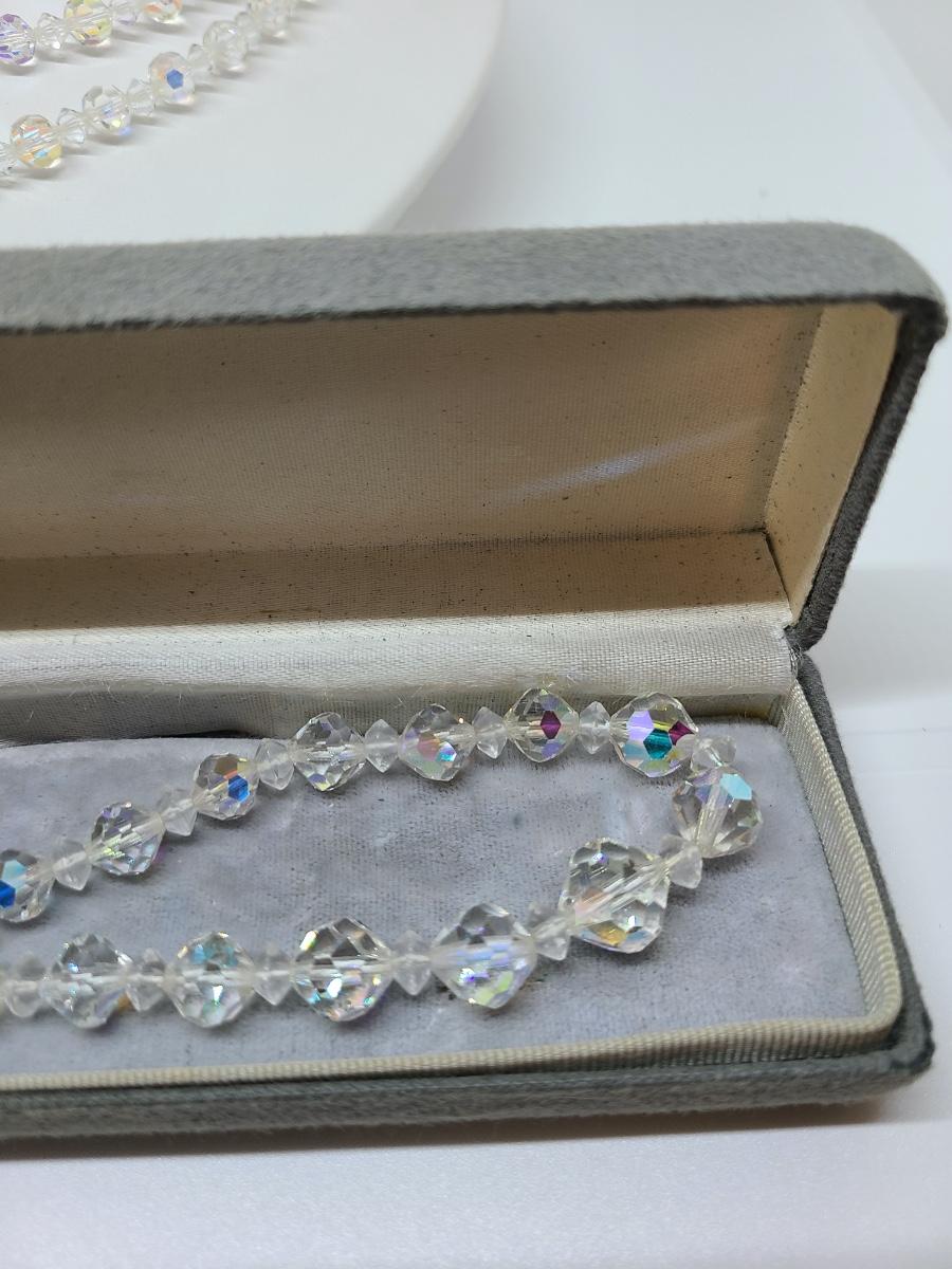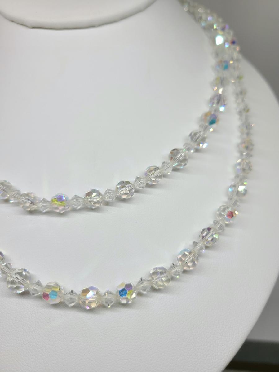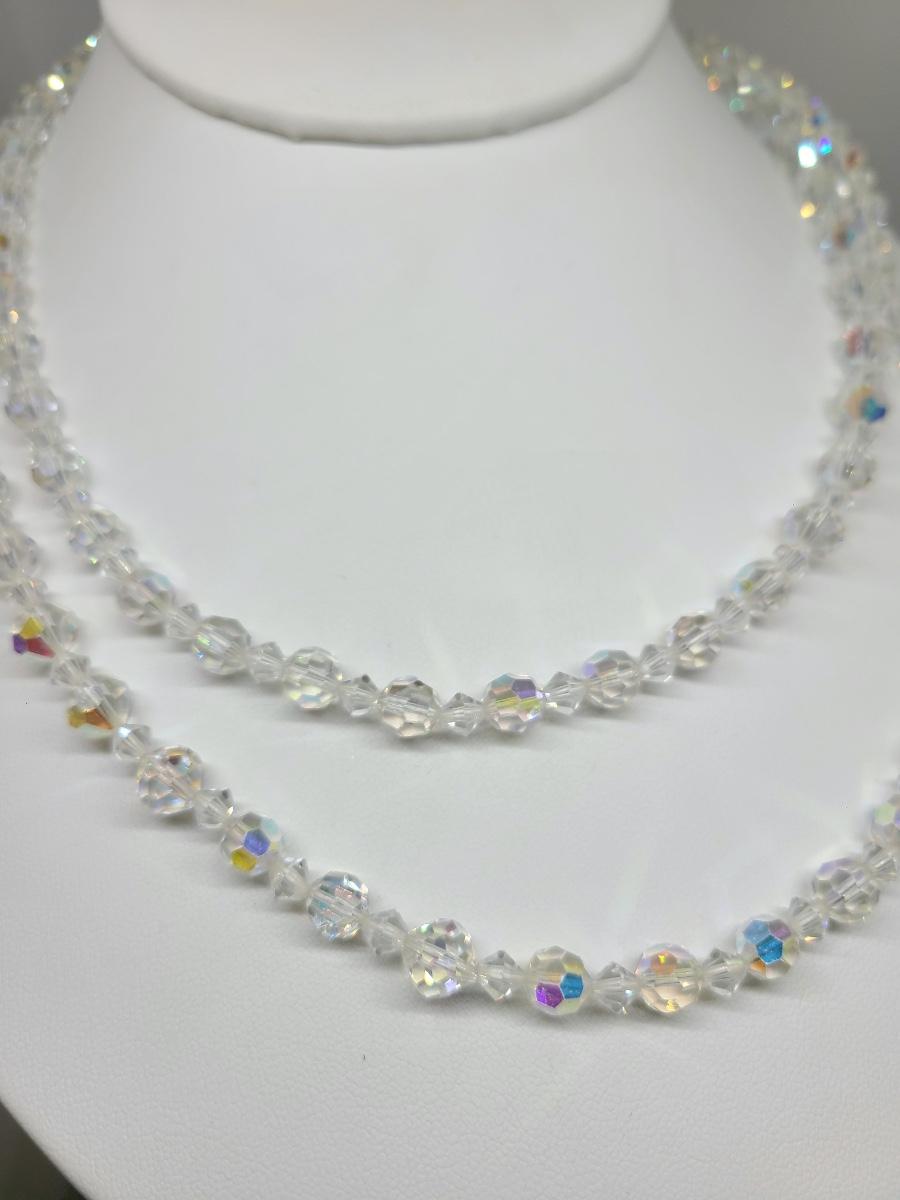 Two gorgeous vintage sparkling glass beaded necklaces. One is long enough to double, and has larger beads at center. Please see all pictures as they are the best representation of the items. The pictures show condition, measurements if taken, and what is included in the lot. Due to the large amount that we photograph and the time frame, we are not always able to take measurements. All items unless noted, are pre-owned and have been used. If you purchased furniture, you must bring help. We do not allow one person to carry large furniture out on their own. Bring help, tools and a truck for the safety of our client’s homes, and your personal safety. Any damages that result to the property including walls, and floors due to moving of the furniture will be charged to the buyer. Company policy. Thank you.