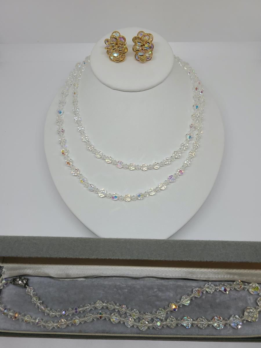 Lot 149: Vintage Aurora Borealis Crystal Beaded Necklaces & Earrings
