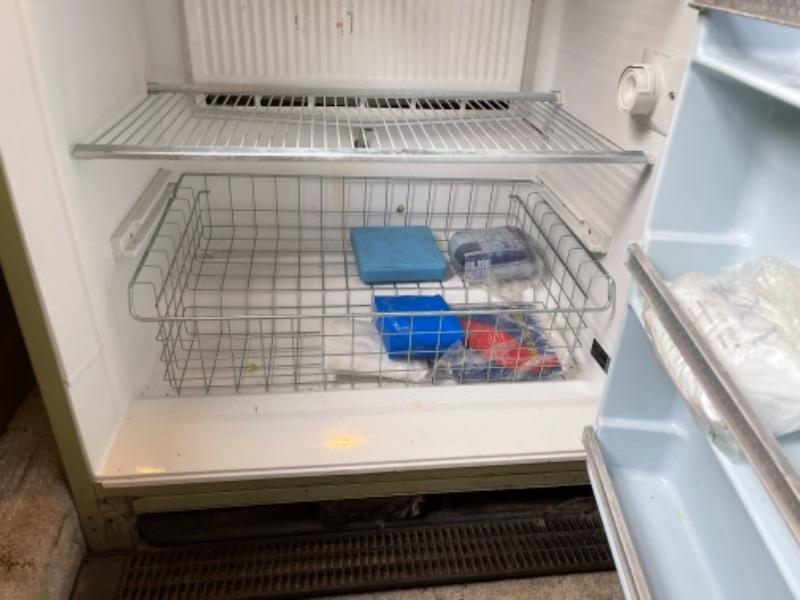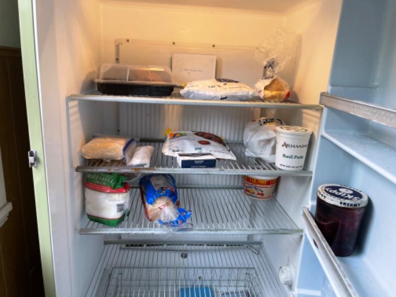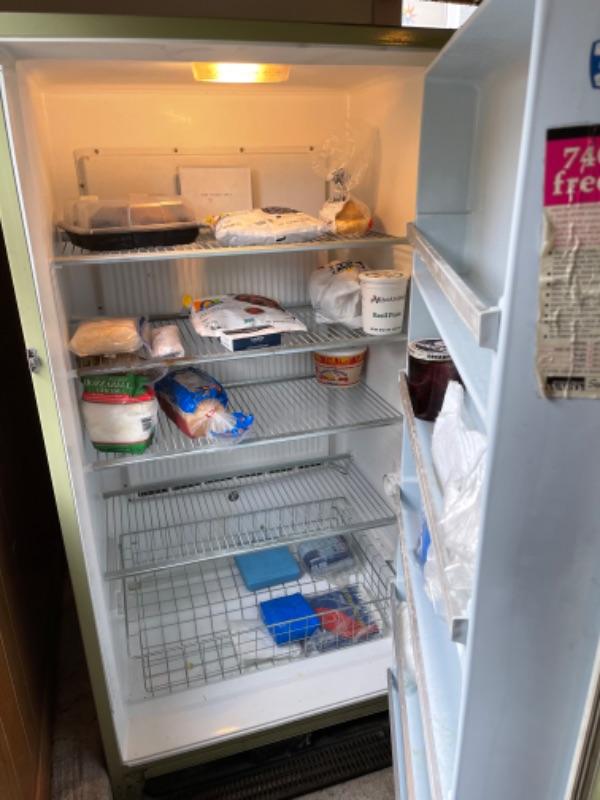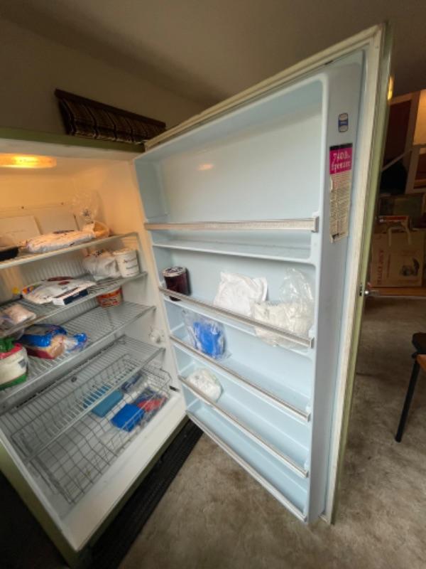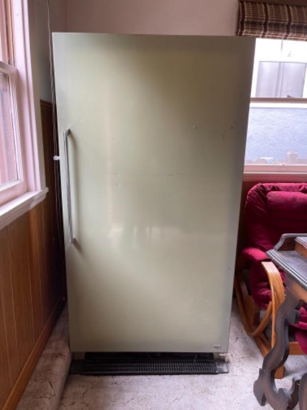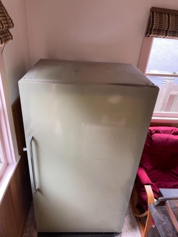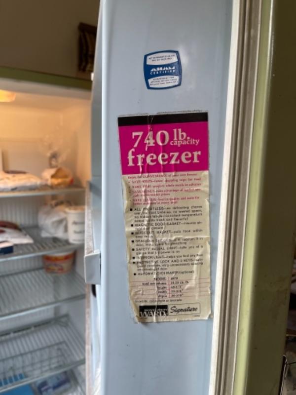 Lot 149. Vintage Montgomery Ward freezer (looks great), 21.15 cubic feet, holds 740 lbs., avocado color, with lock--Was $65 - - Now $45