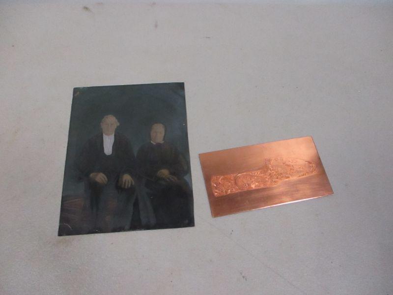 Lot 149 - Vintage Daguerreotype Couple Portrait Picture & Tin Plaque