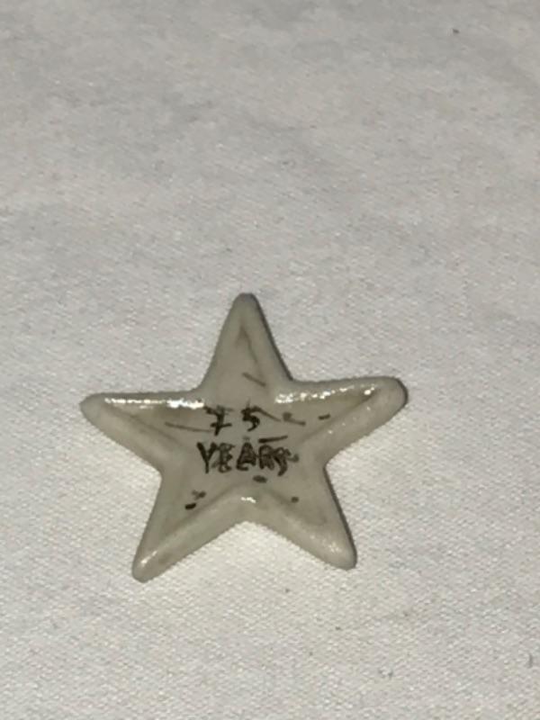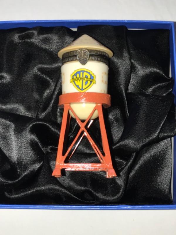 Warner Bros Collectors Guild 75th Anniversary “The Water Tower” porcelain surprise box. 3-1/4” tall. Roof opens to reveal a miniature star from the Hollywood Walk of Fame celebrating 75 years. Comes with certificate of authenticity