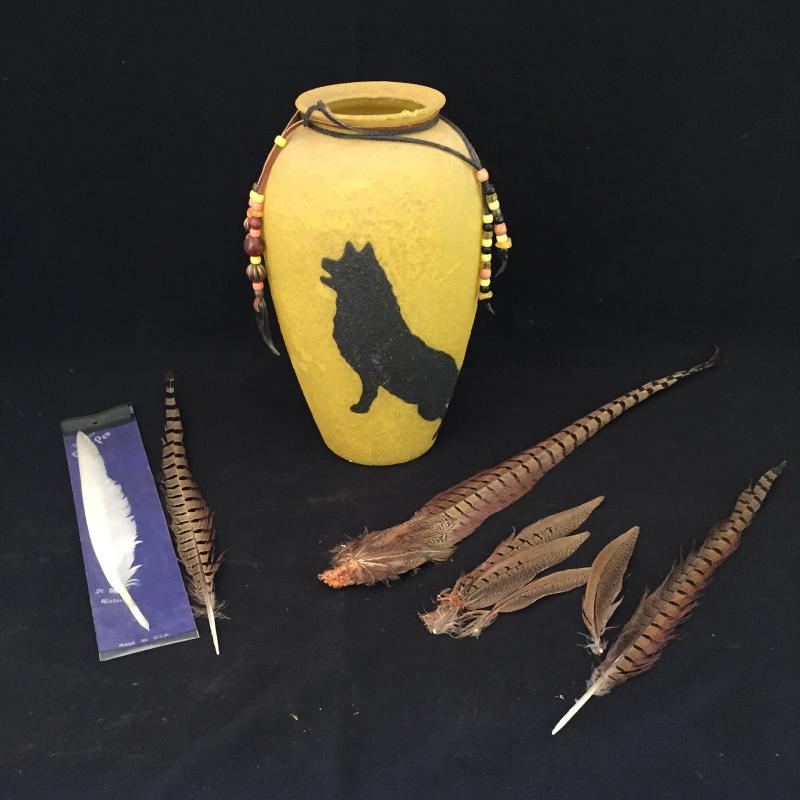 Lot 149 - Wolf Vase and Feathers