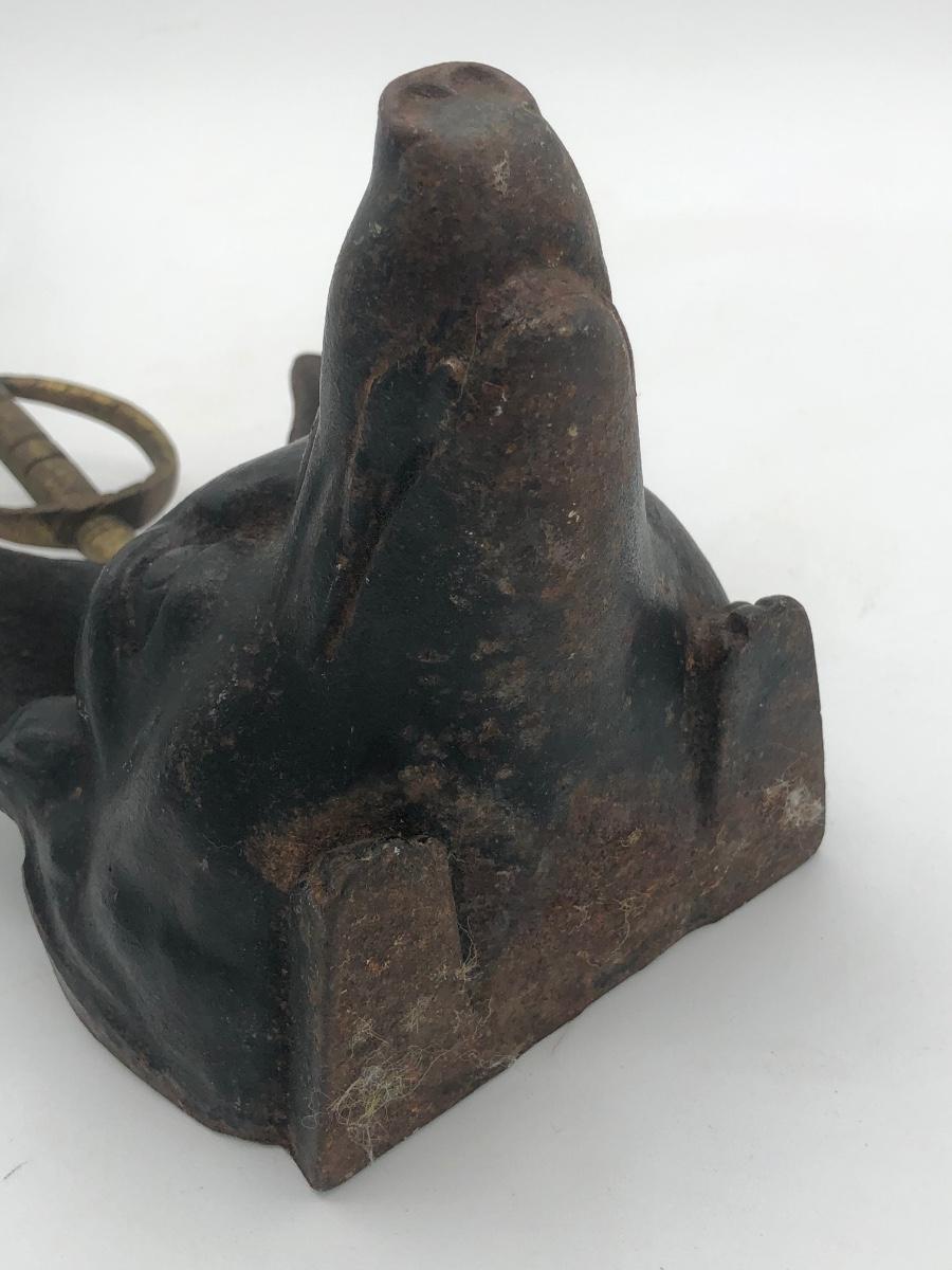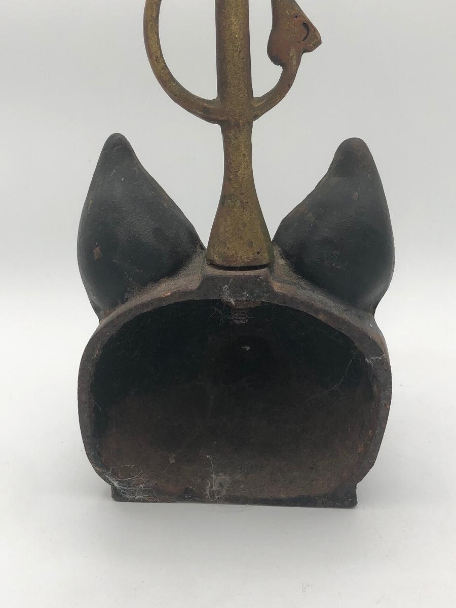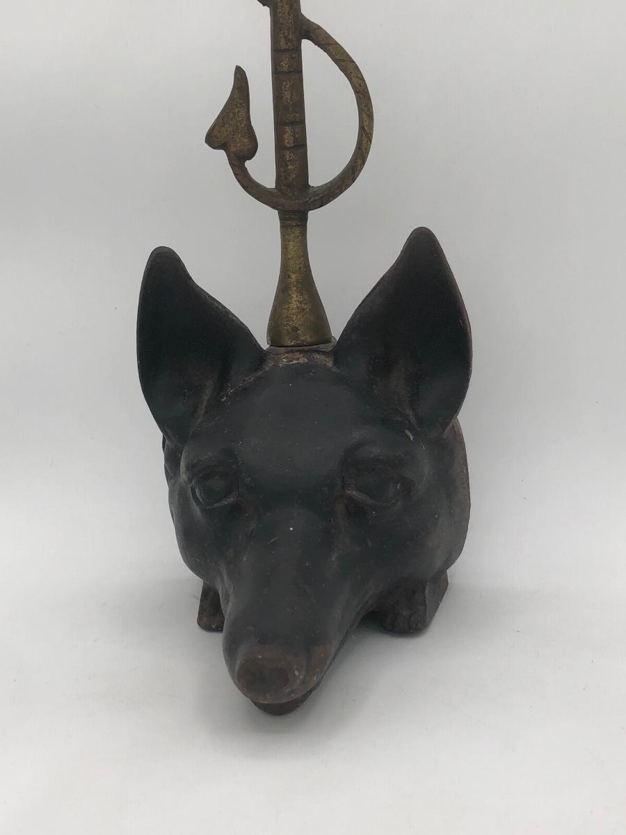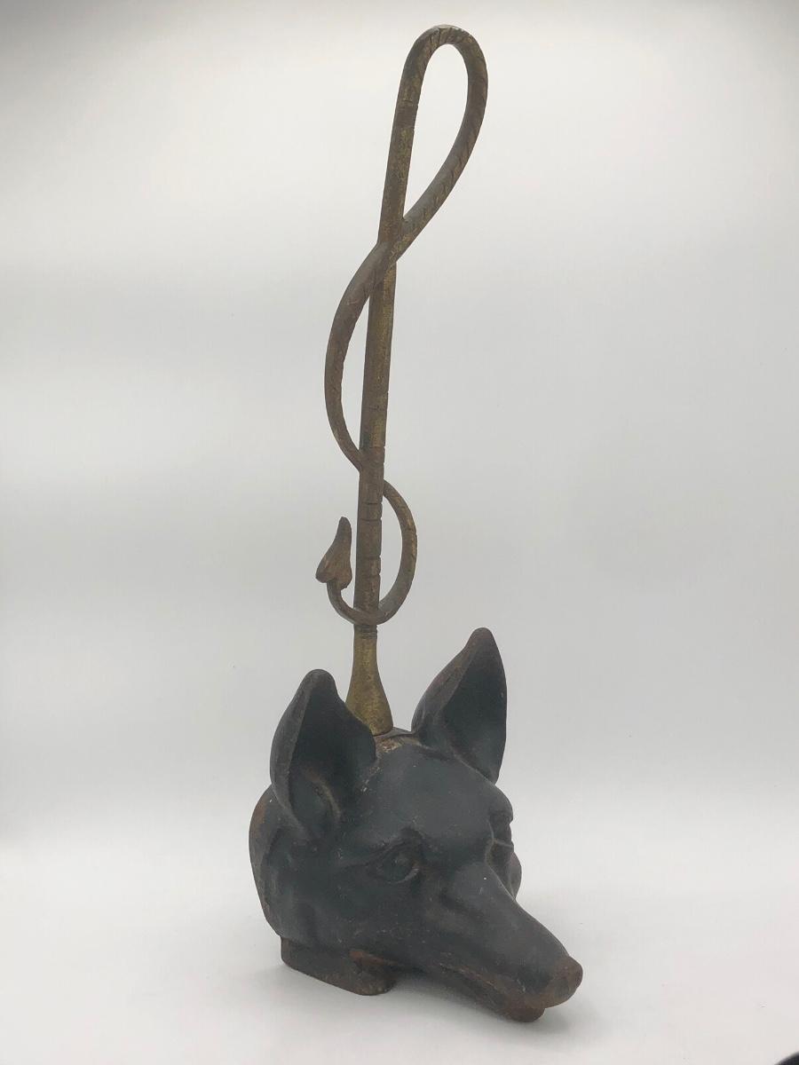 LOT 149F: Vintage Virginia Metalcrafters Cast Iron Fox Head Doorstop w/ Brass Whip