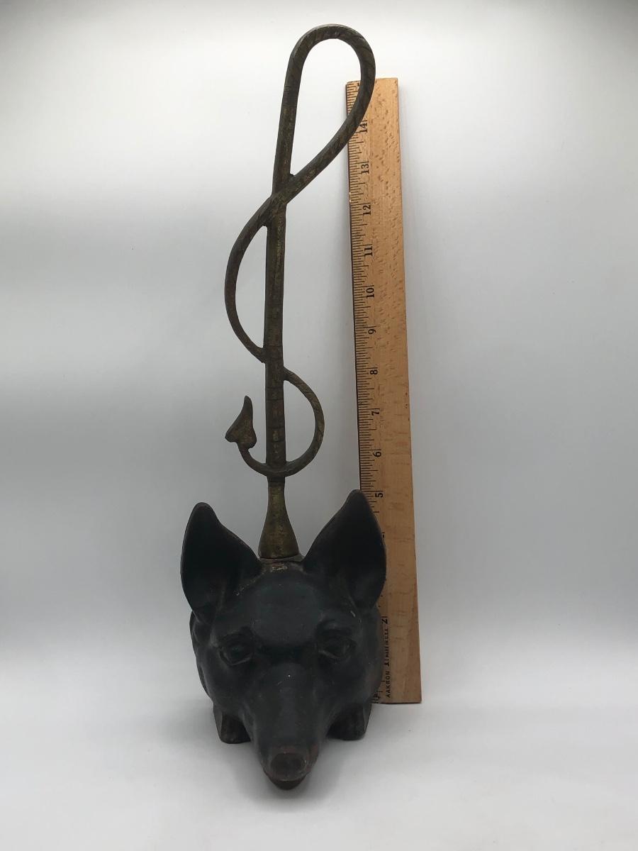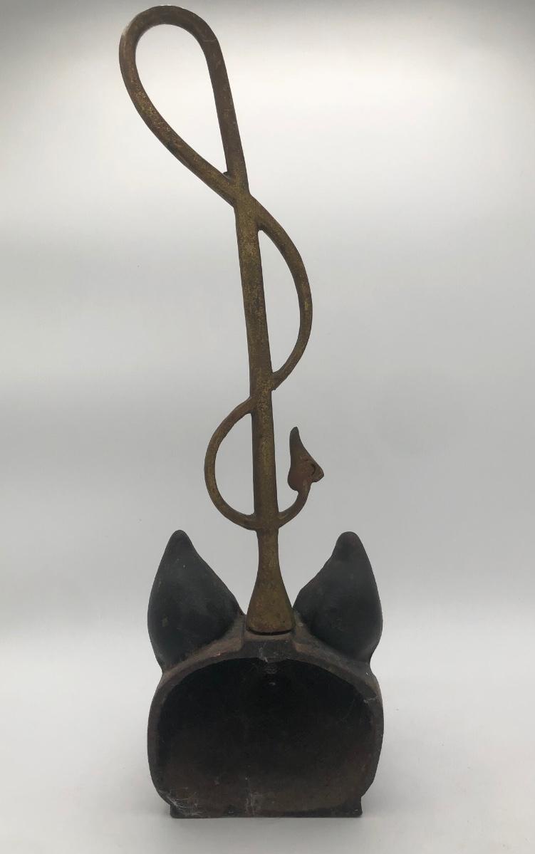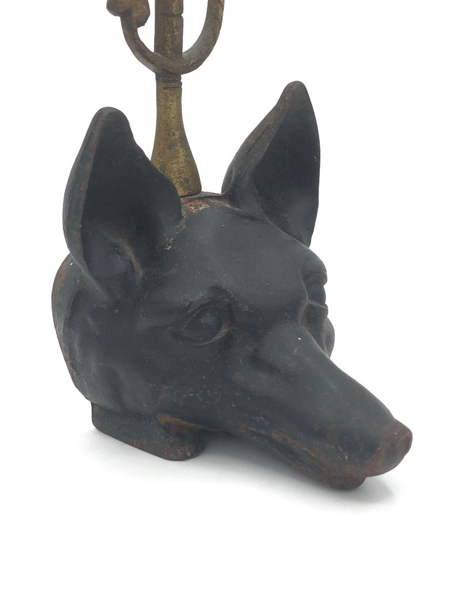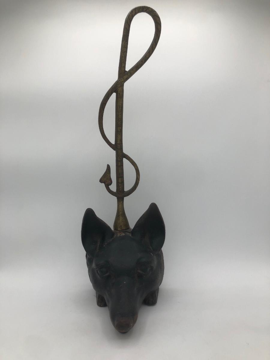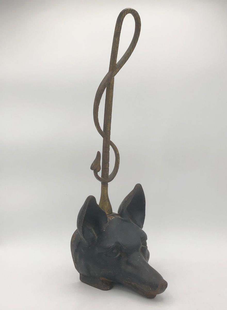LOT 149F: Vintage Virginia Metalcrafters Cast Iron Fox Head Doorstop w/ Brass Whip