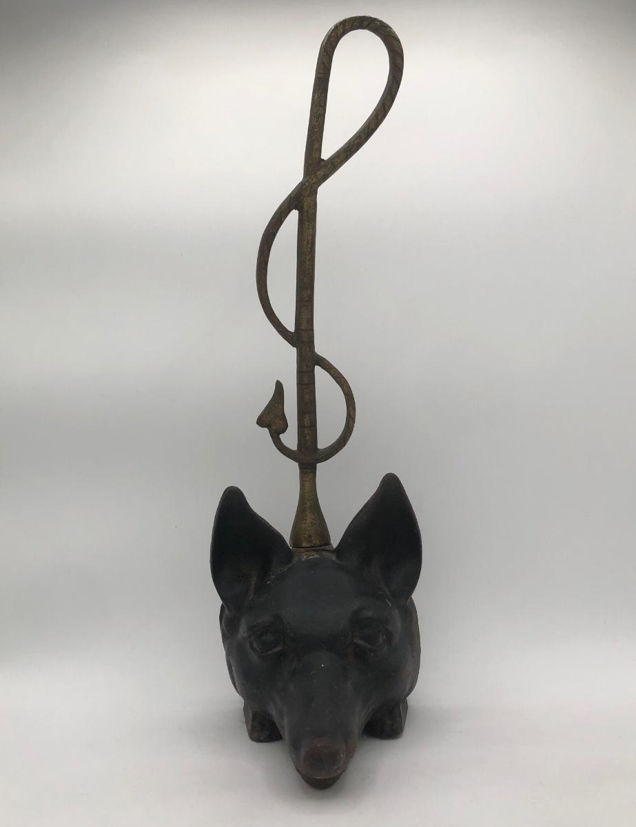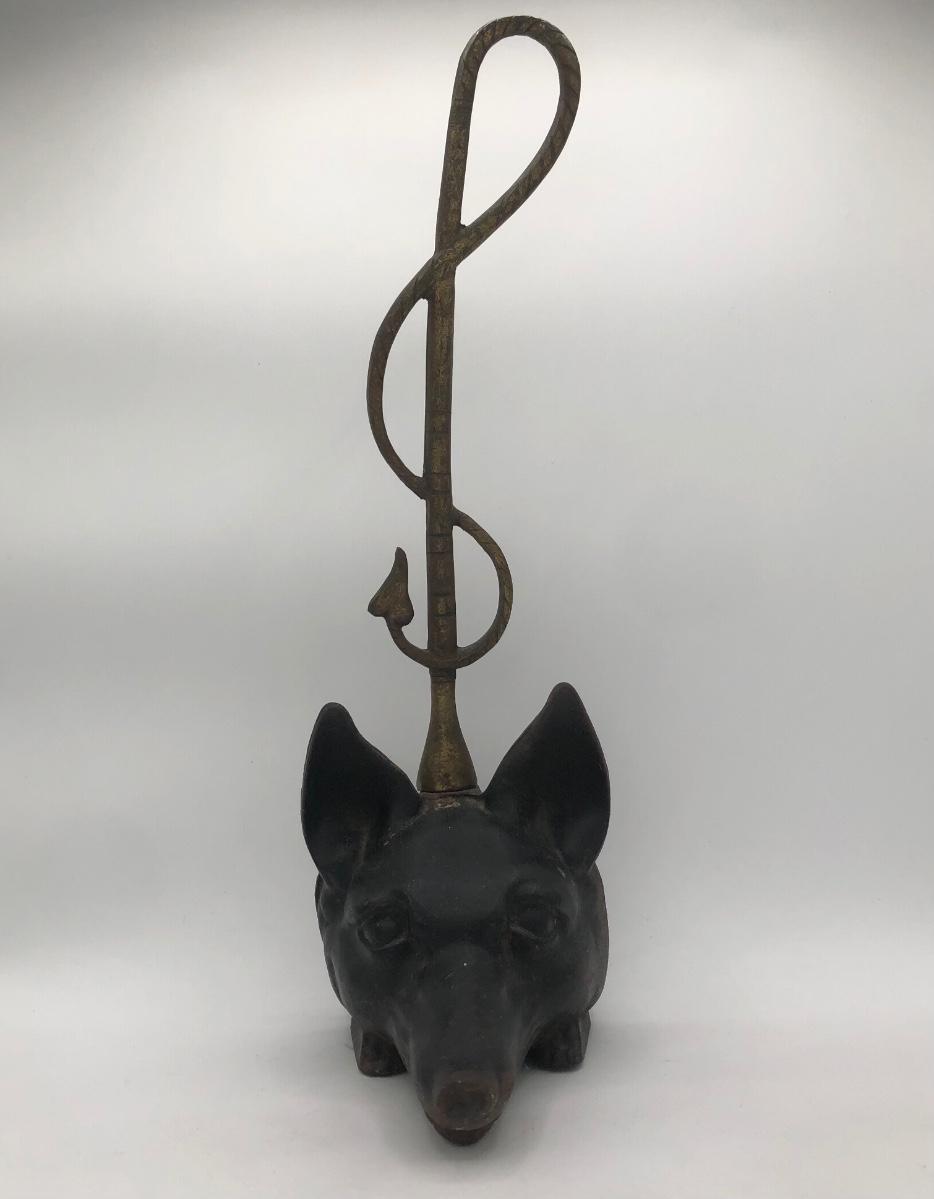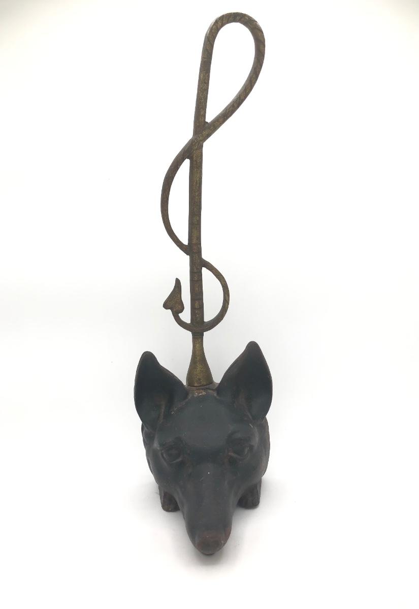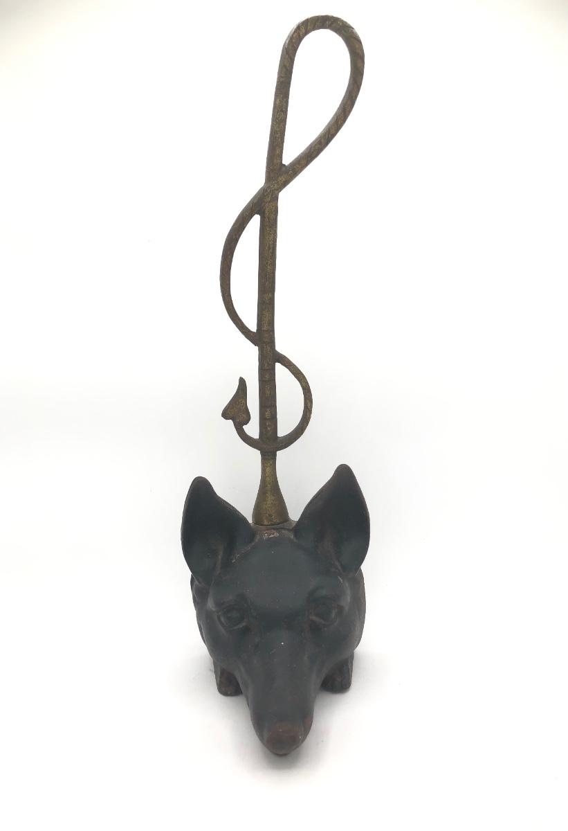 LOT 149F: Vintage Virginia Metalcrafters Cast Iron Fox Head Doorstop w/ Brass Whip