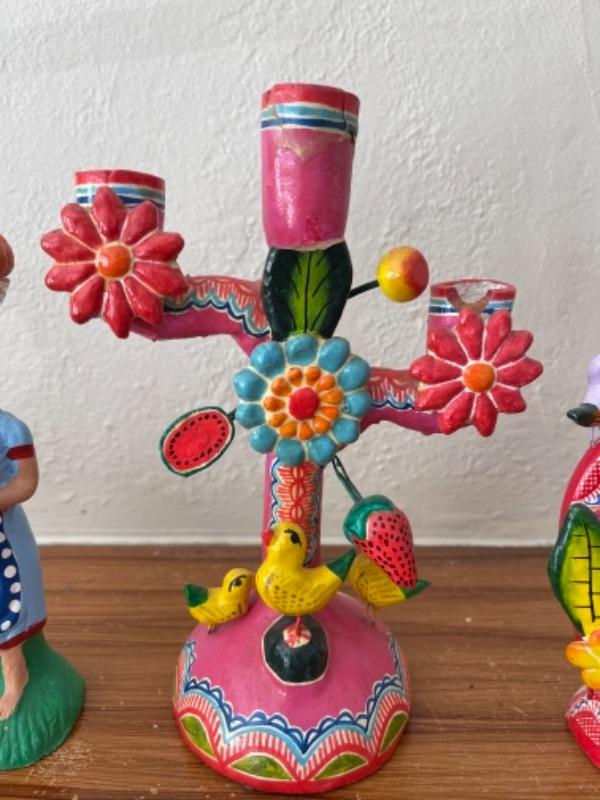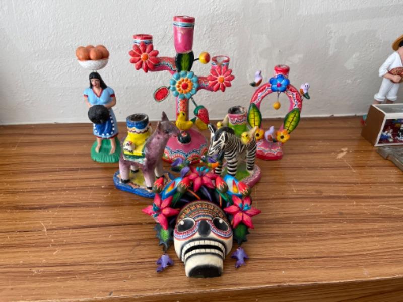 Lot 14LD. Lot of Oaxacan clay candleholders and wall decor (some as is)--$65