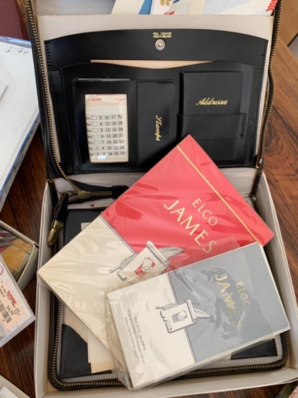 Lot 14U. Three vintage notepads, vintage stationery (some personalized),art paper, gift boxes, gift cards, digital photo albums with keychains, scratch pads, cassette case, vintage brief case with planner etc.--Was $35 - Now $15