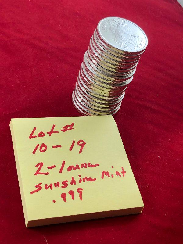 Lot #15- 2 Sunshine Mint .999 1 Ounce silver Bullion Coins Uncirculated