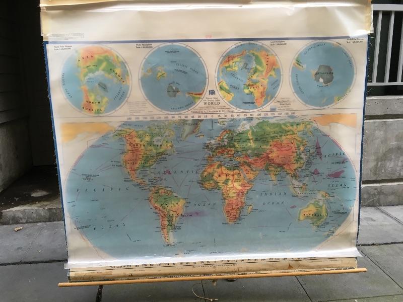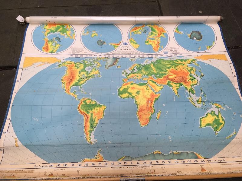 Lot 15 Large 1964 School World Map. Map includes an overlay