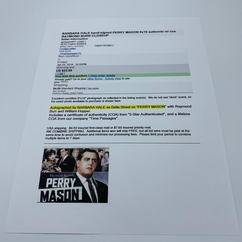 Here are some classic TV actors for you. Lot includes James Garner, Dwayne Hickman(no COA), Raymond Burr, Mike Conners, Peter Falk, and George Scott. All six photos include COA except as noted above.