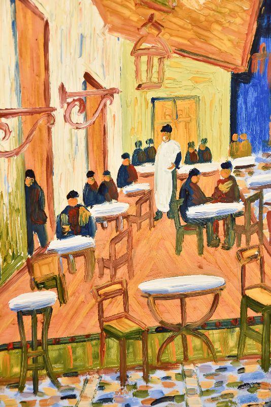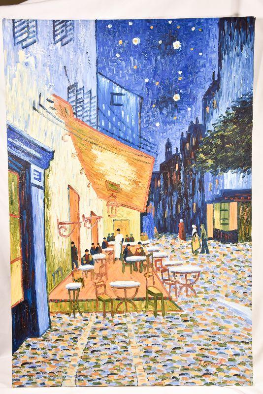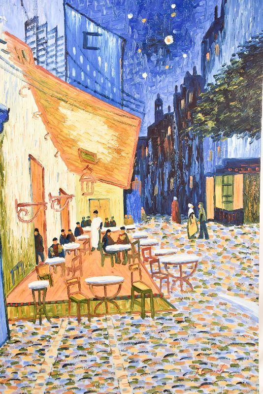 J. Ganoh signed painted copy of the famous Van Gogh "Cafe Terrace at night"
