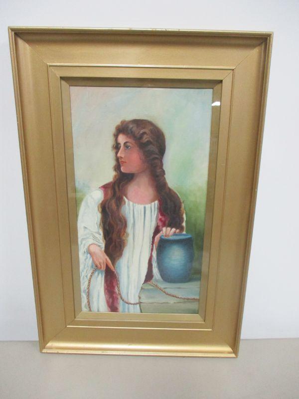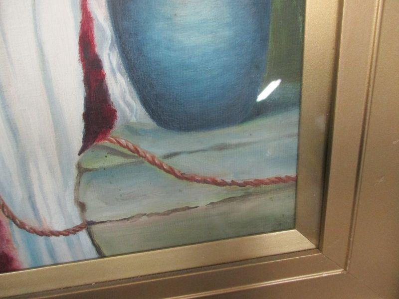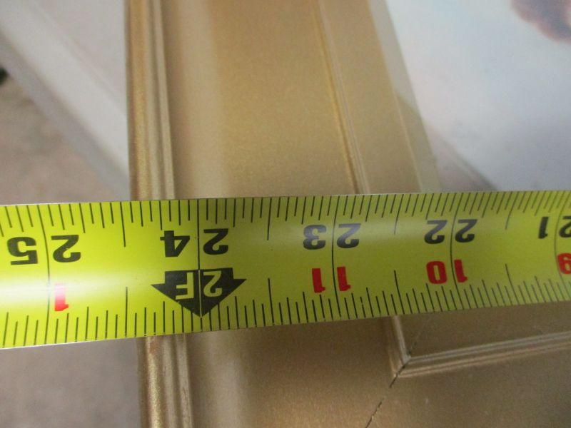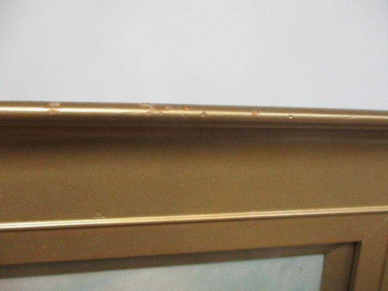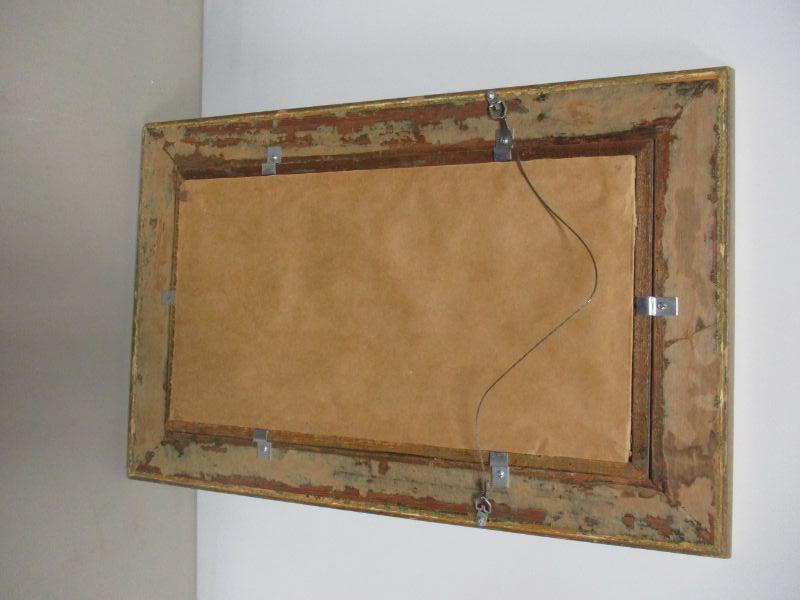 Please see pictures for condition frame does have some damage and picture may need cleaning. Size approx 24 1/2 x 16 1/2