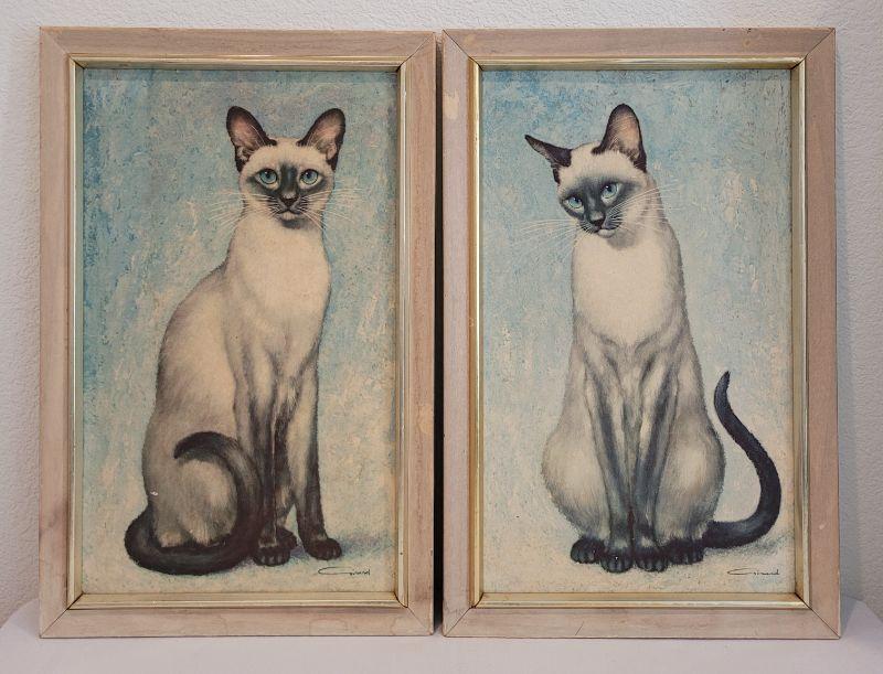 Lot 15: Mid Century Modern Art Crest Siamese Pictures (2)