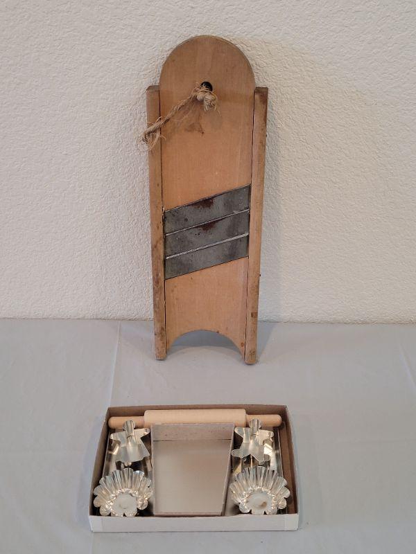 Lot 15: Vintage Slicer and Vintage Small Child Size Baking Set