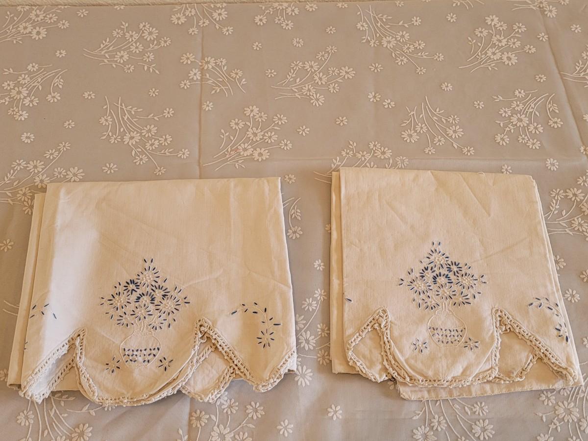 Lot 15: (2) Vintage Needlepoint Pillowcases (Stanford size, has some discoloration)
