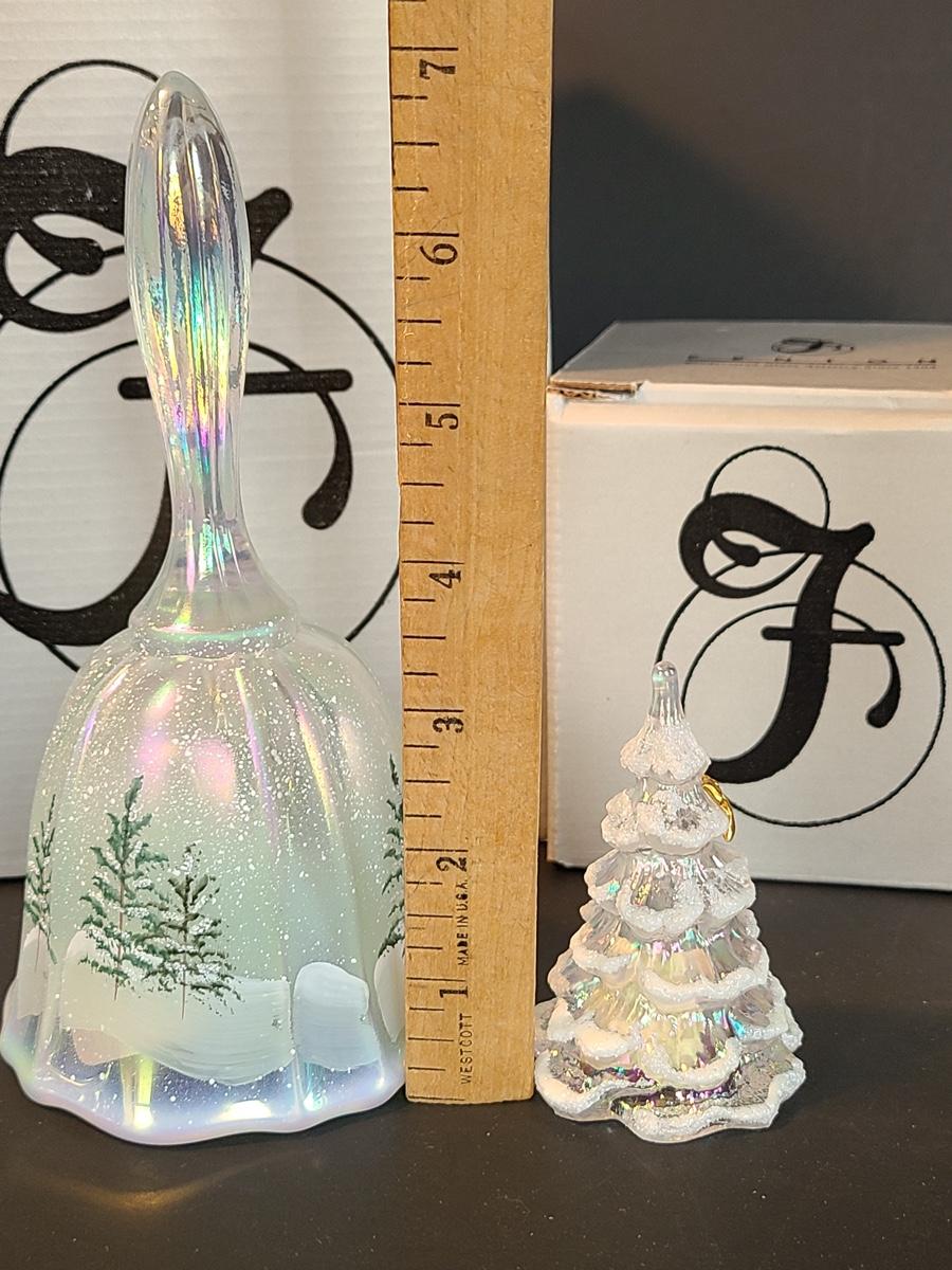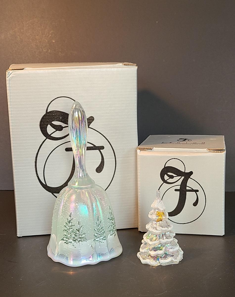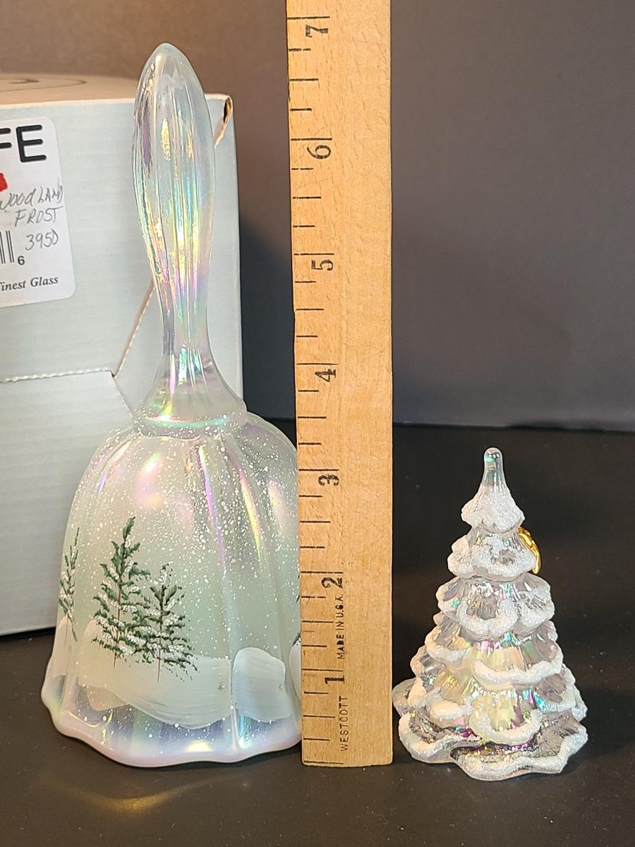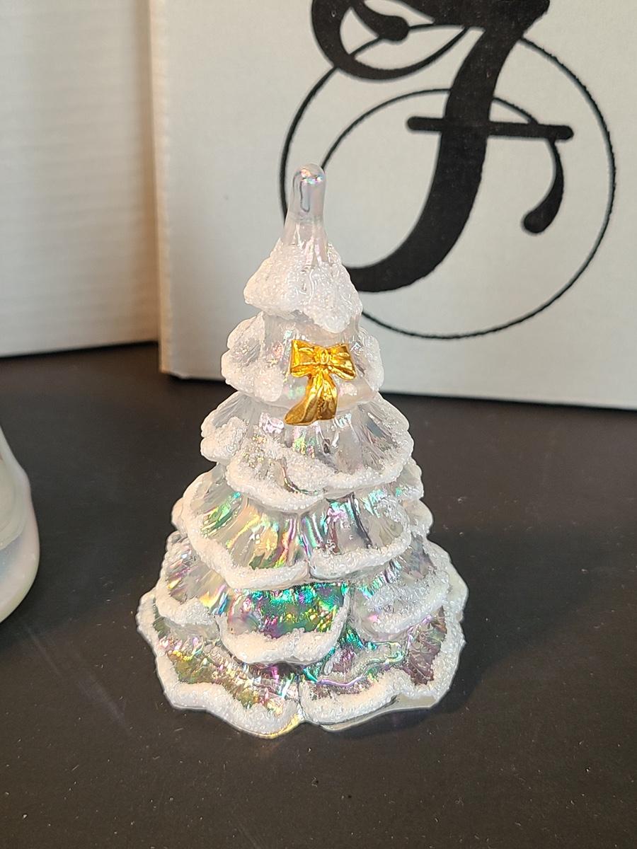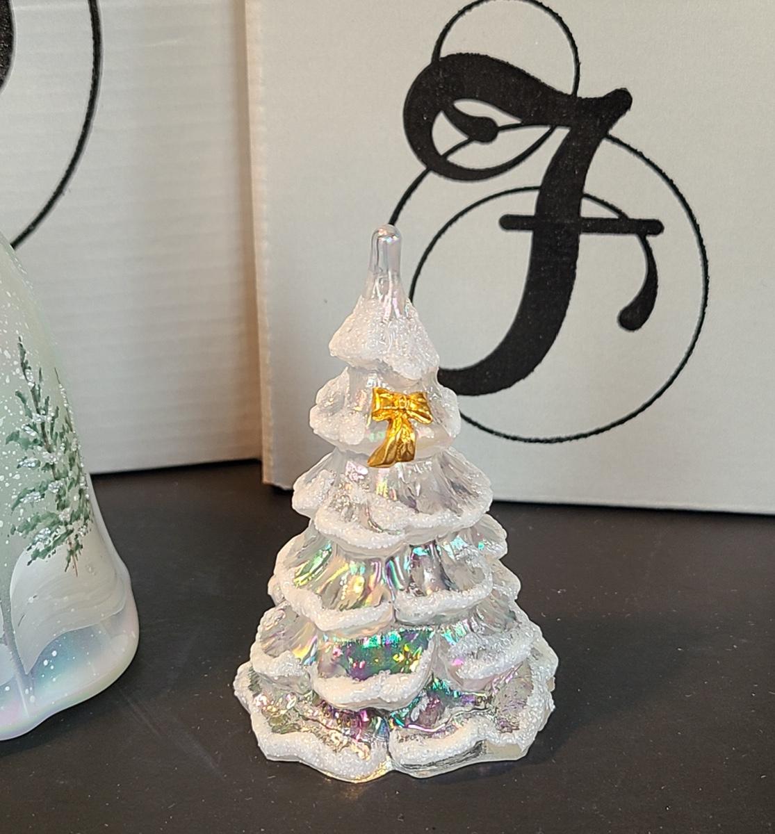 Lot 154: Fenton Woodland Frost Bell and Iridescent Small Tree with Gold Bow