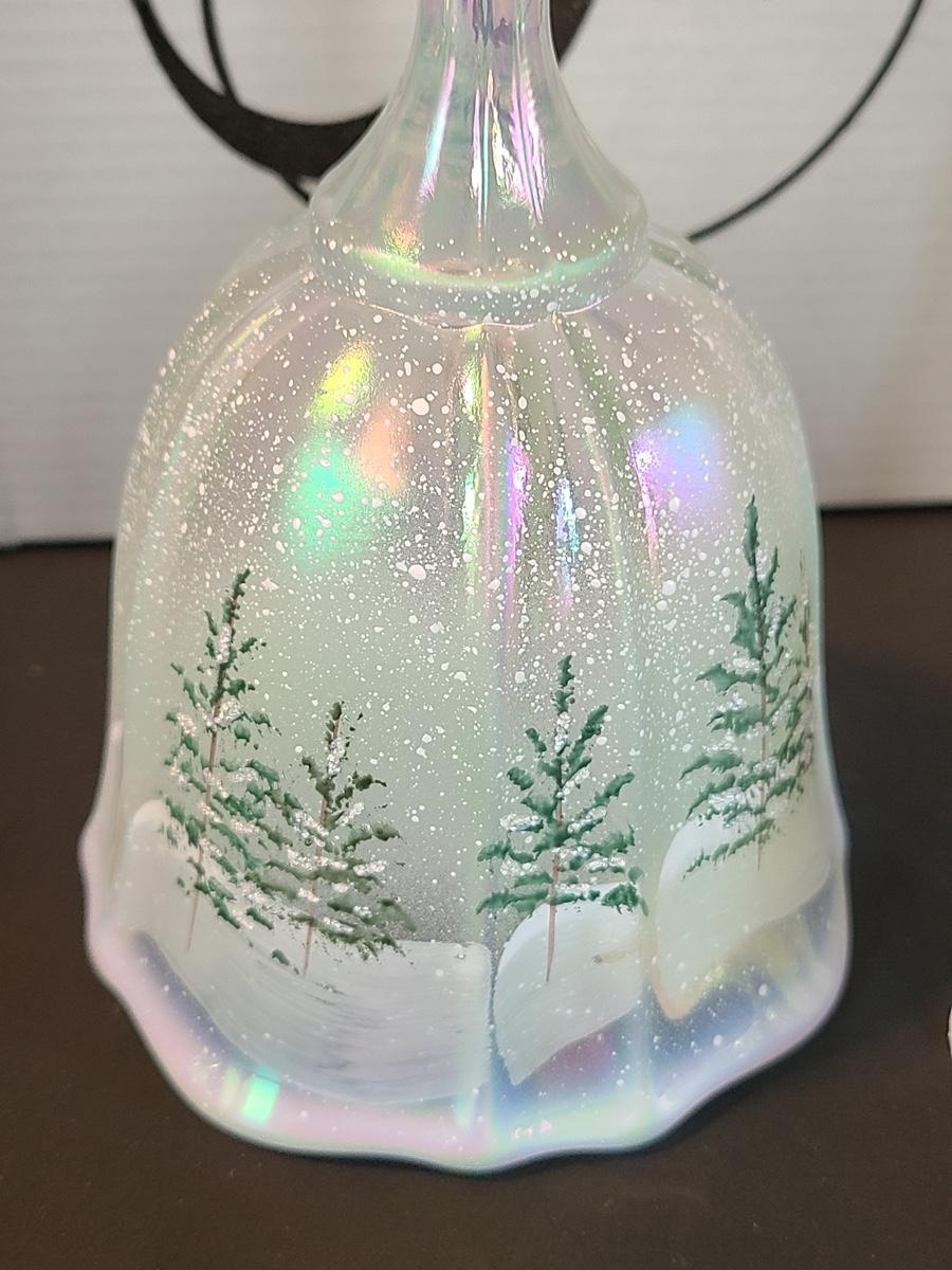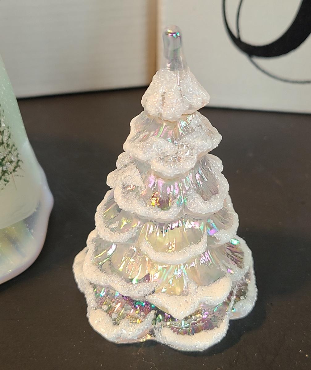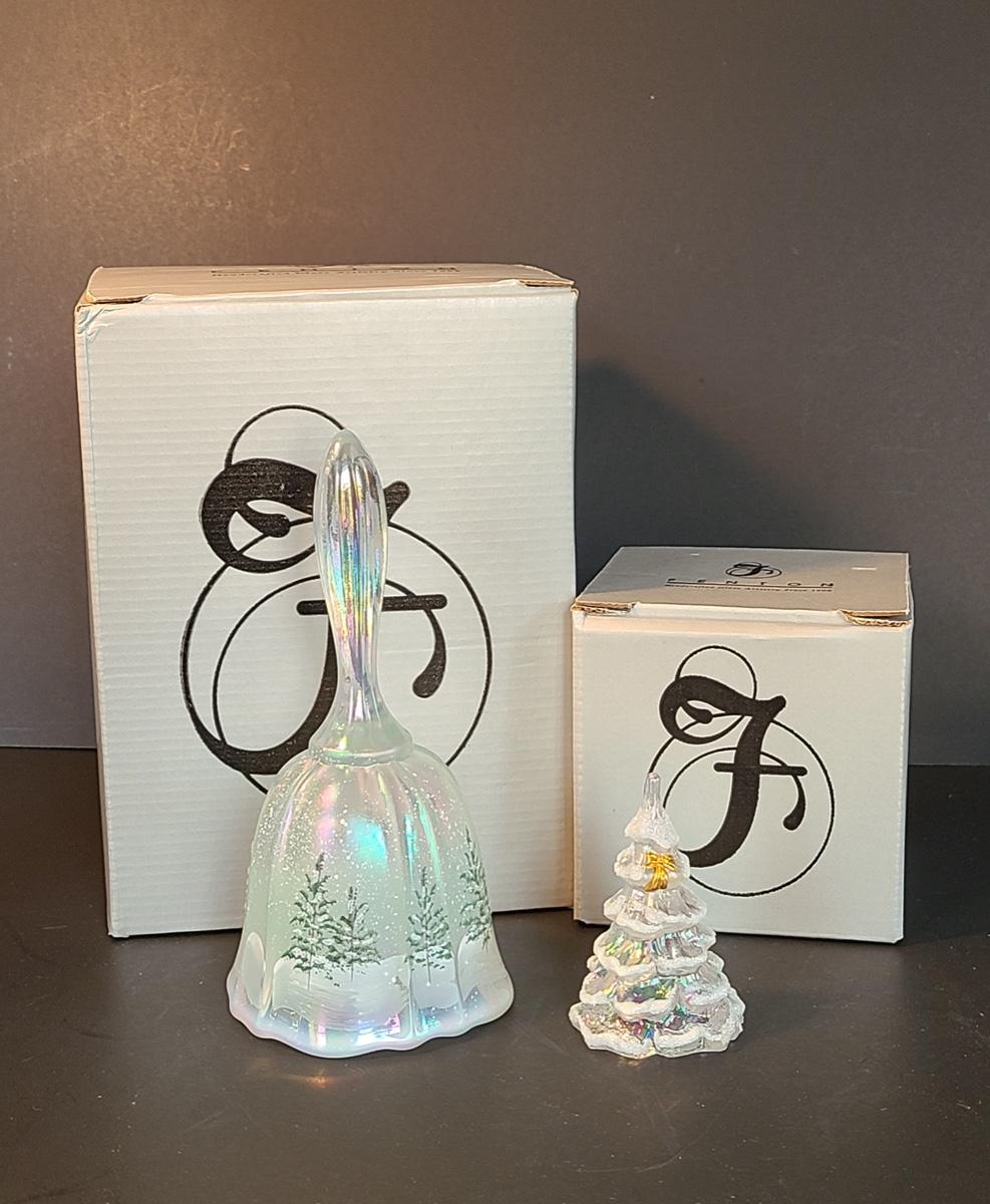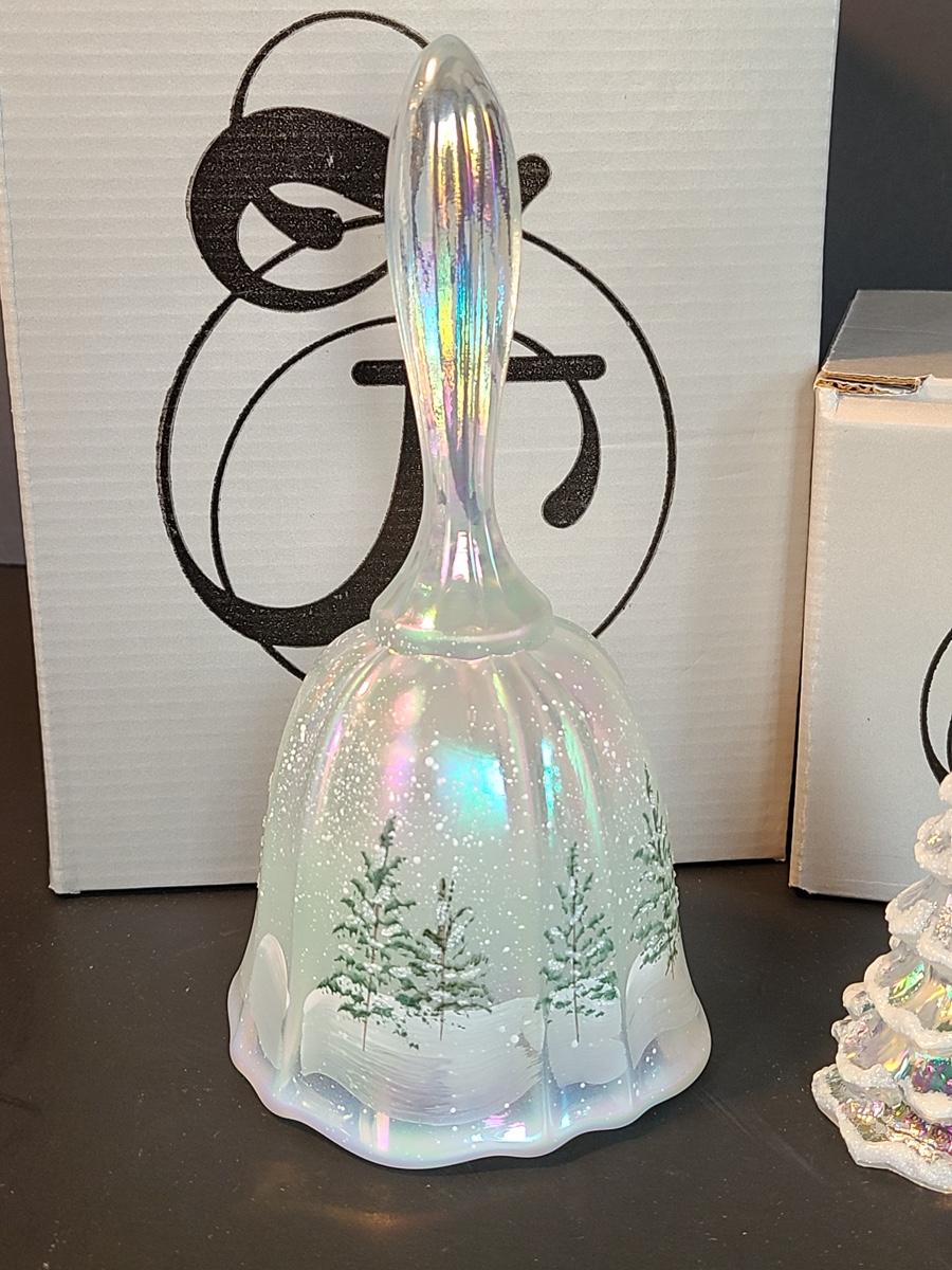 Lot 154: Fenton Woodland Frost Bell and Iridescent Small Tree with Gold Bow