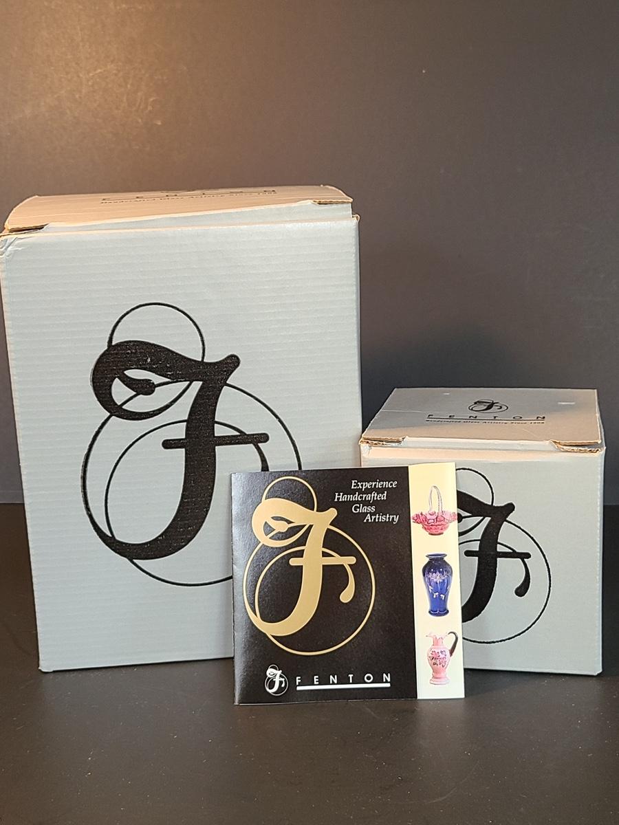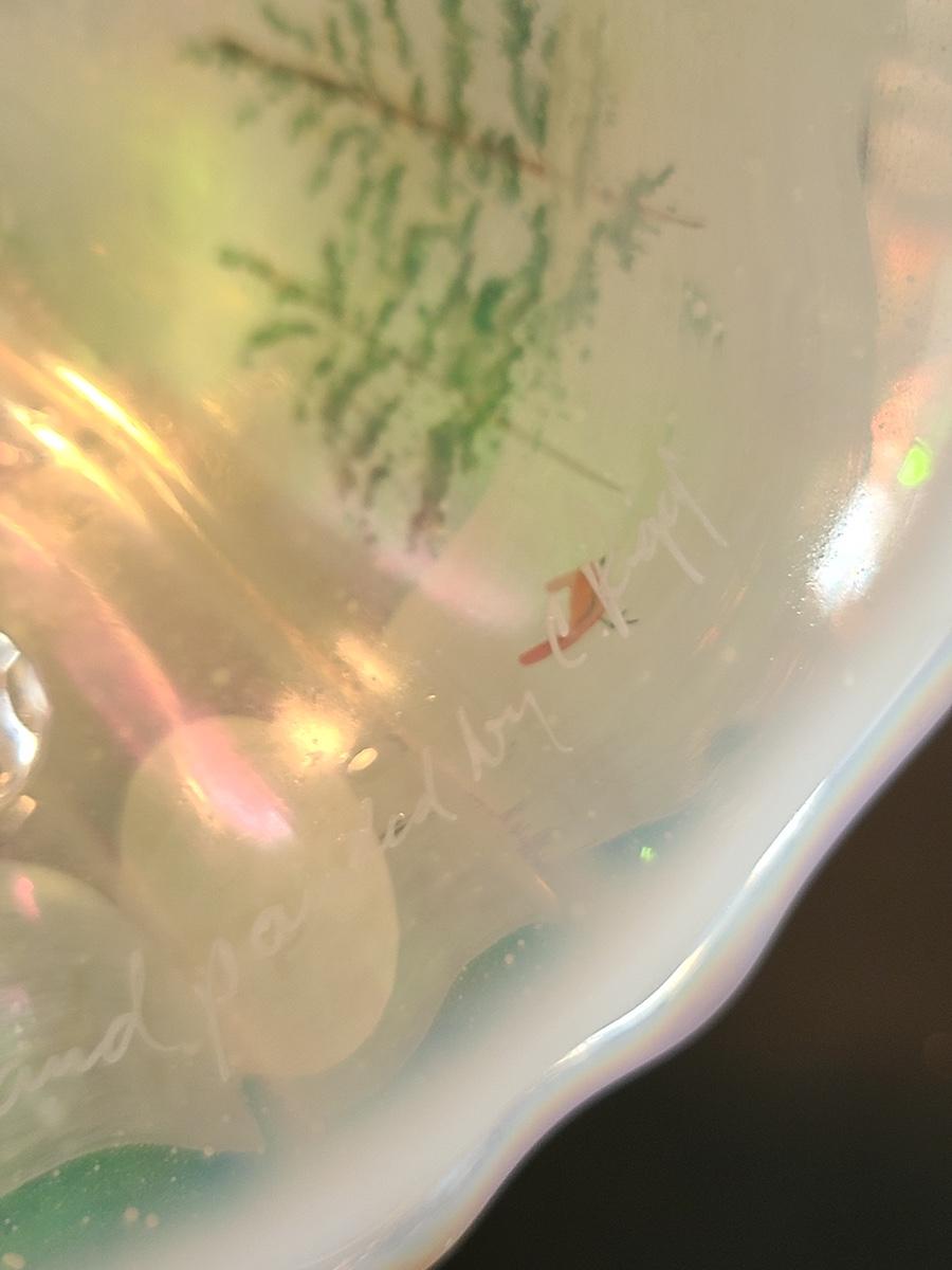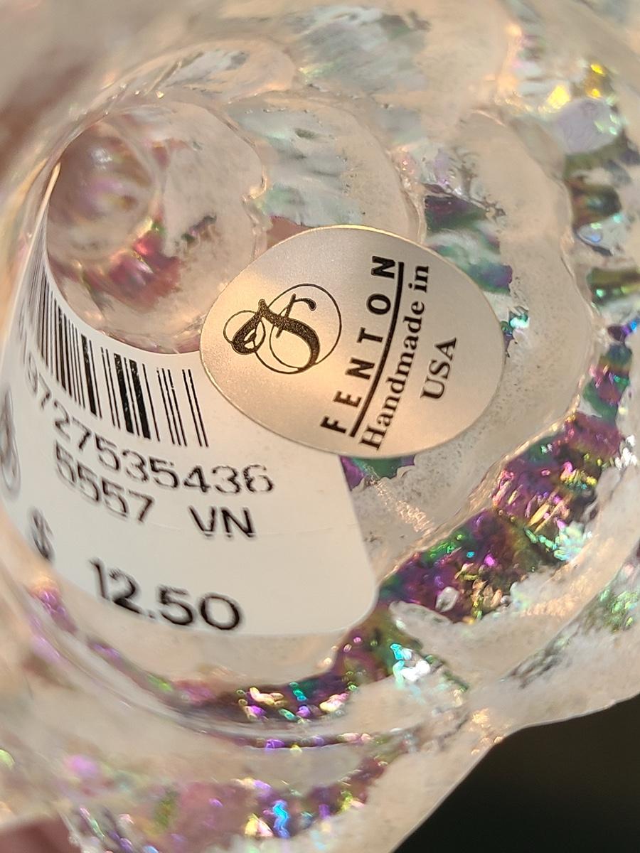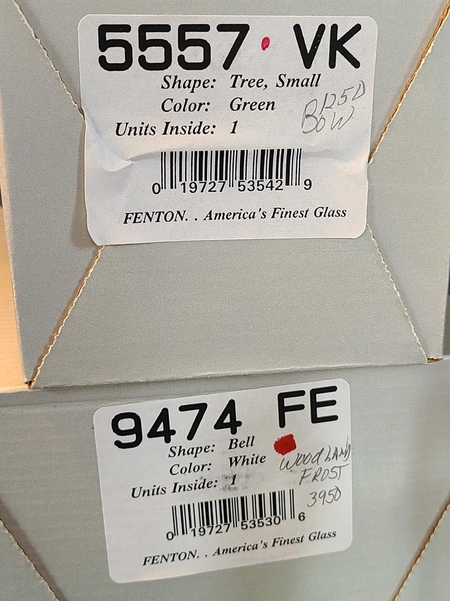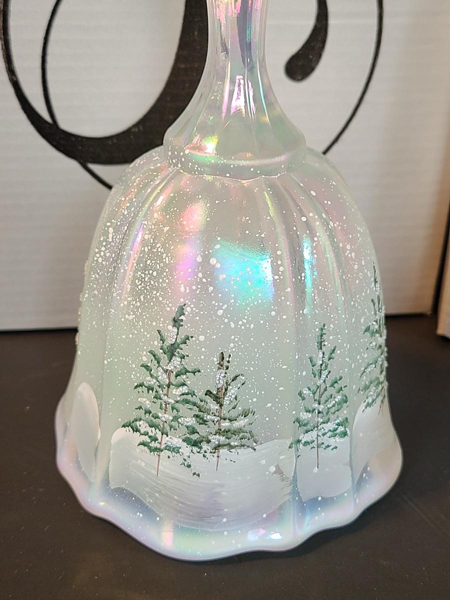 Lot 154: Fenton Woodland Frost Bell and Iridescent Small Tree with Gold Bow
