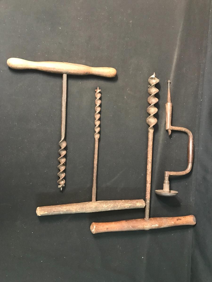 Lot 15: Vintage Primitive Hand Tools - Augers & Hand Drill