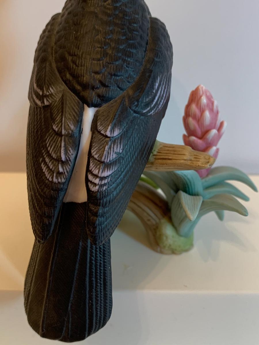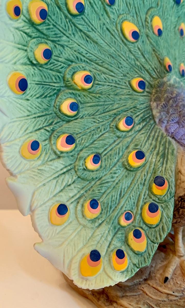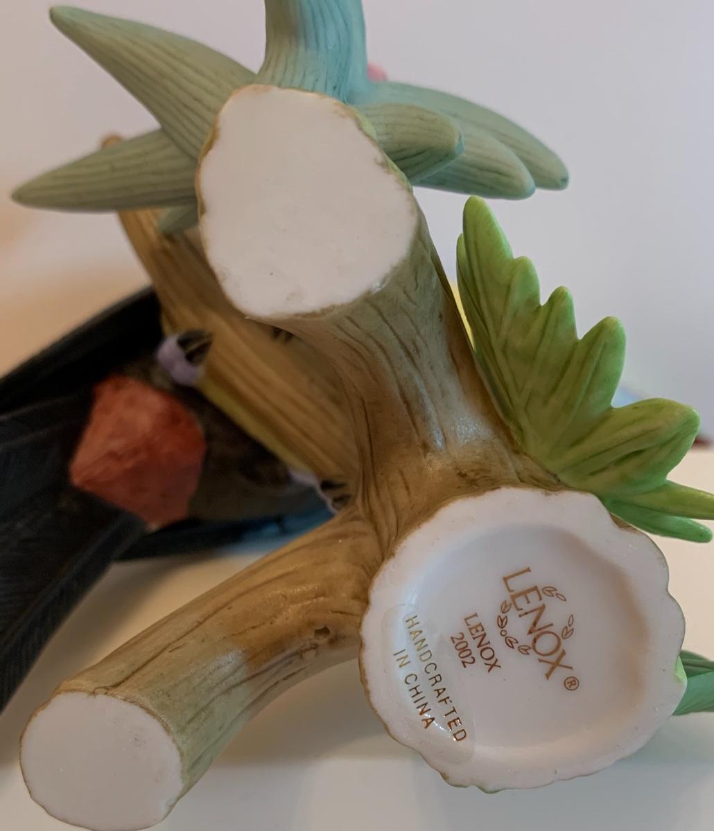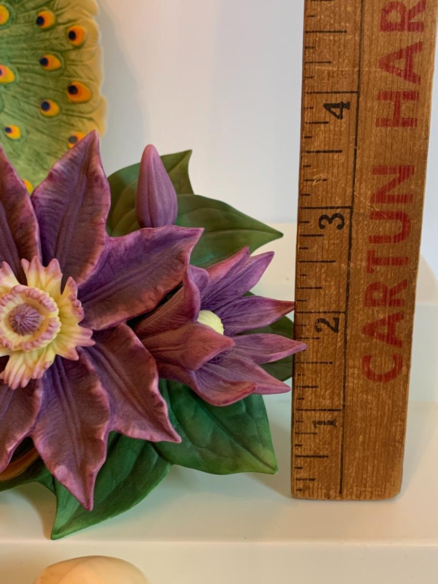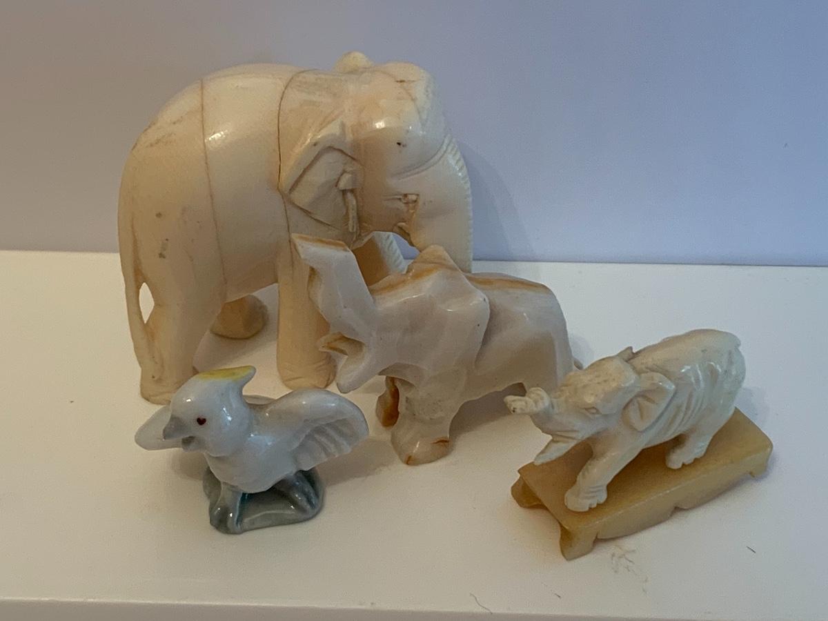 Beautifully detailed Lefton peacock in this collection of flowers and wildlife. Included are carved miniature elephants, marble and/or bone, Lefton elephant with flaws (as pictured). Lenox flowers and Toucan.