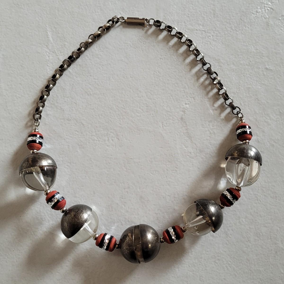 Lot 15: Vintage Metal Link Necklace with Metal Capped Beads