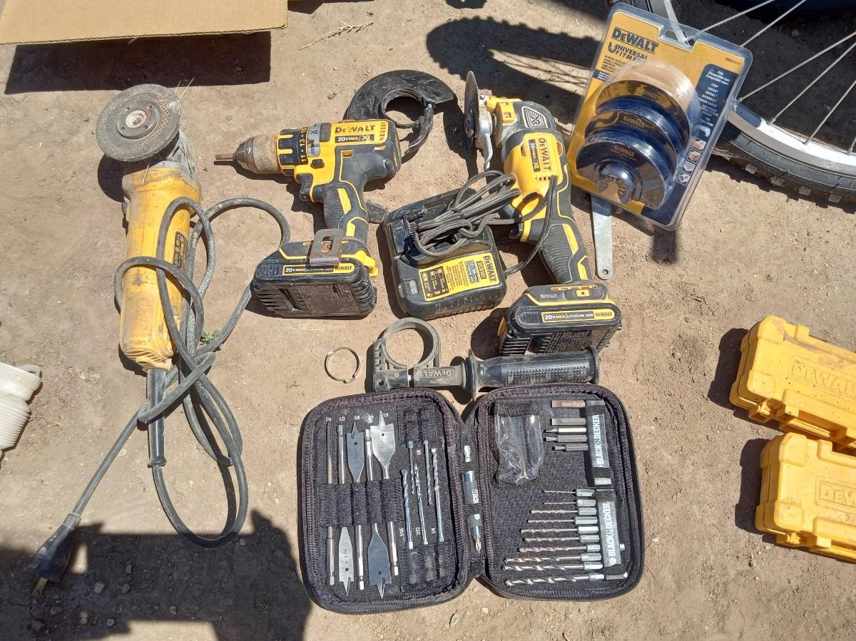 ALSO INCLUDES NEW BLADES, DRILL BITS AND A CORDED ANGLE GRINDER