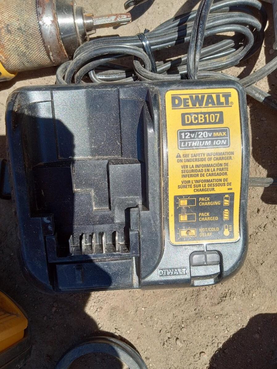 LOT 15  DEWALT CORDLESS DRILL DRIVER AND ANGLE GRINDER, CHARGER AND MORE (SDS)