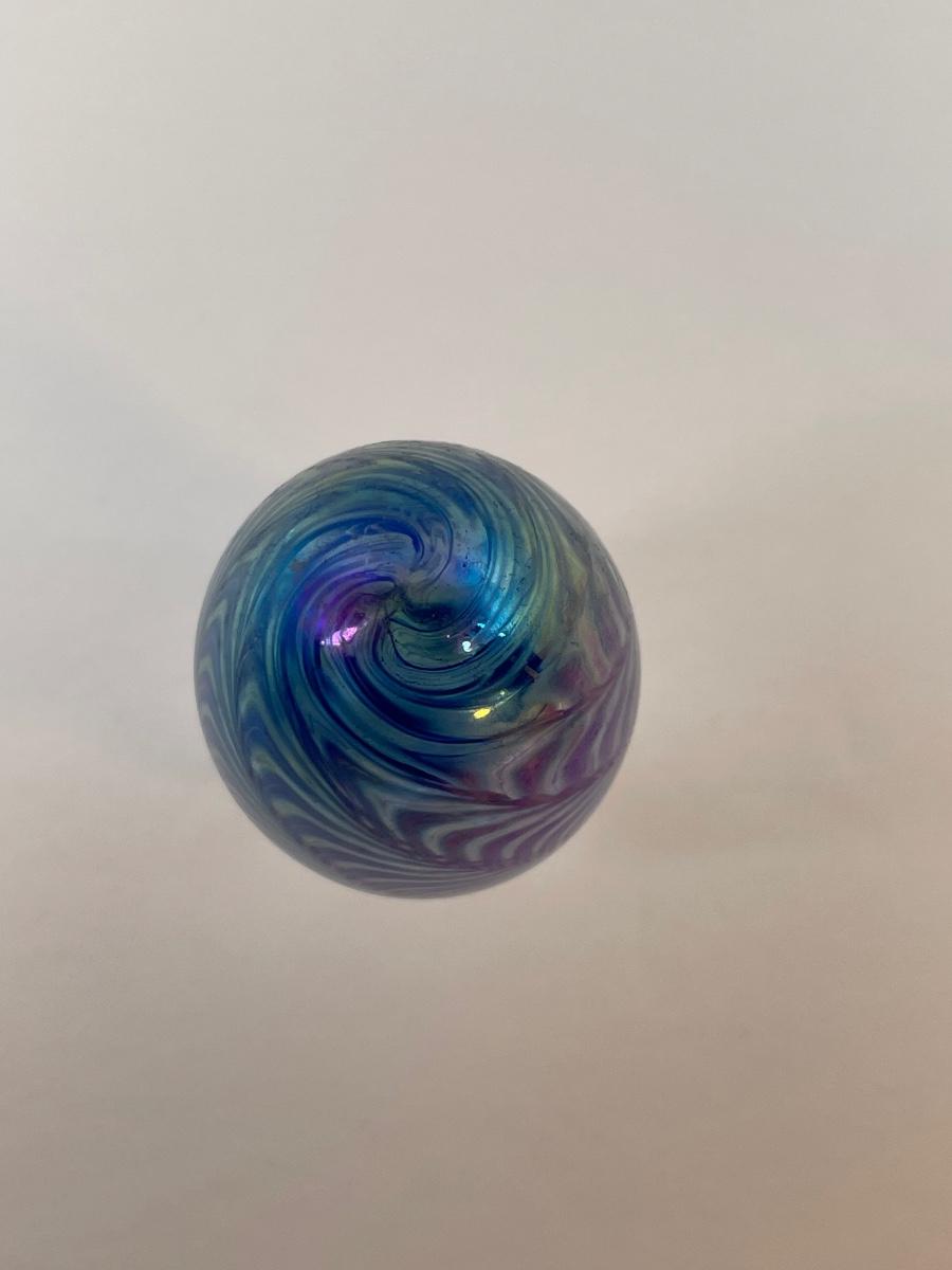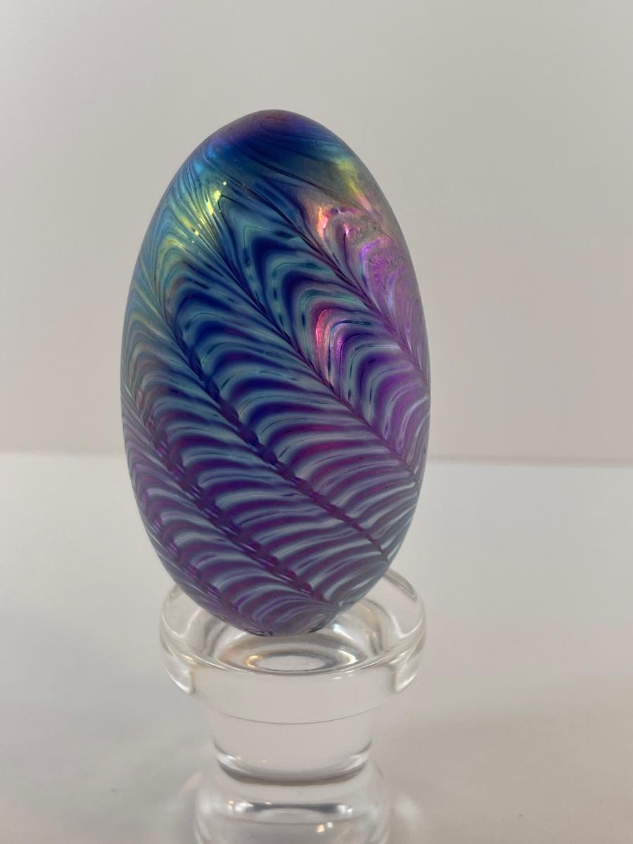 1984 Mt. St. Helen's glass egg in shades of purple made with ash from the volcano.