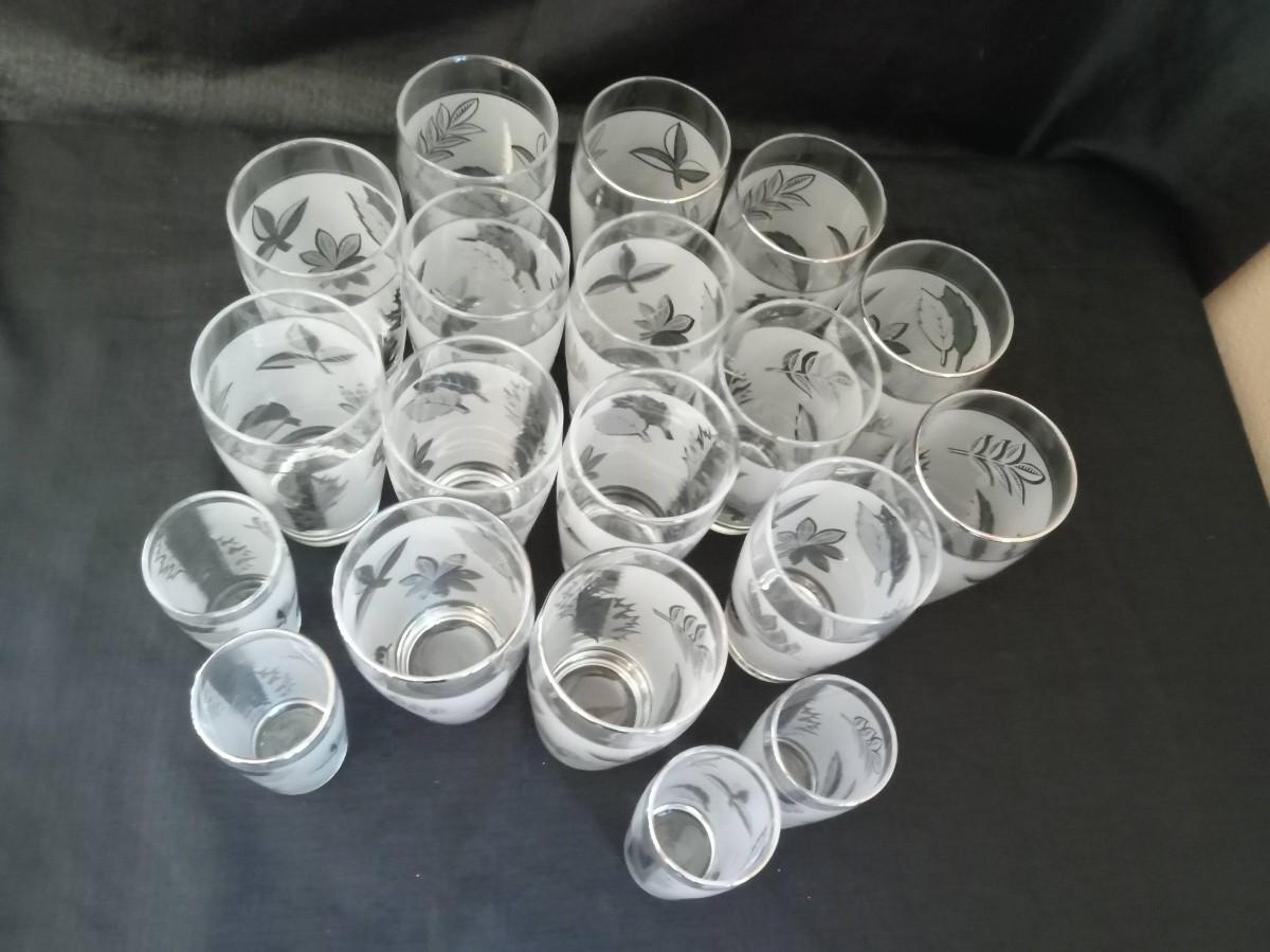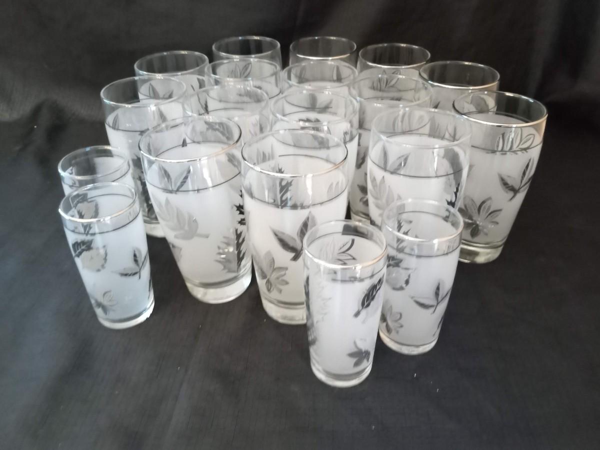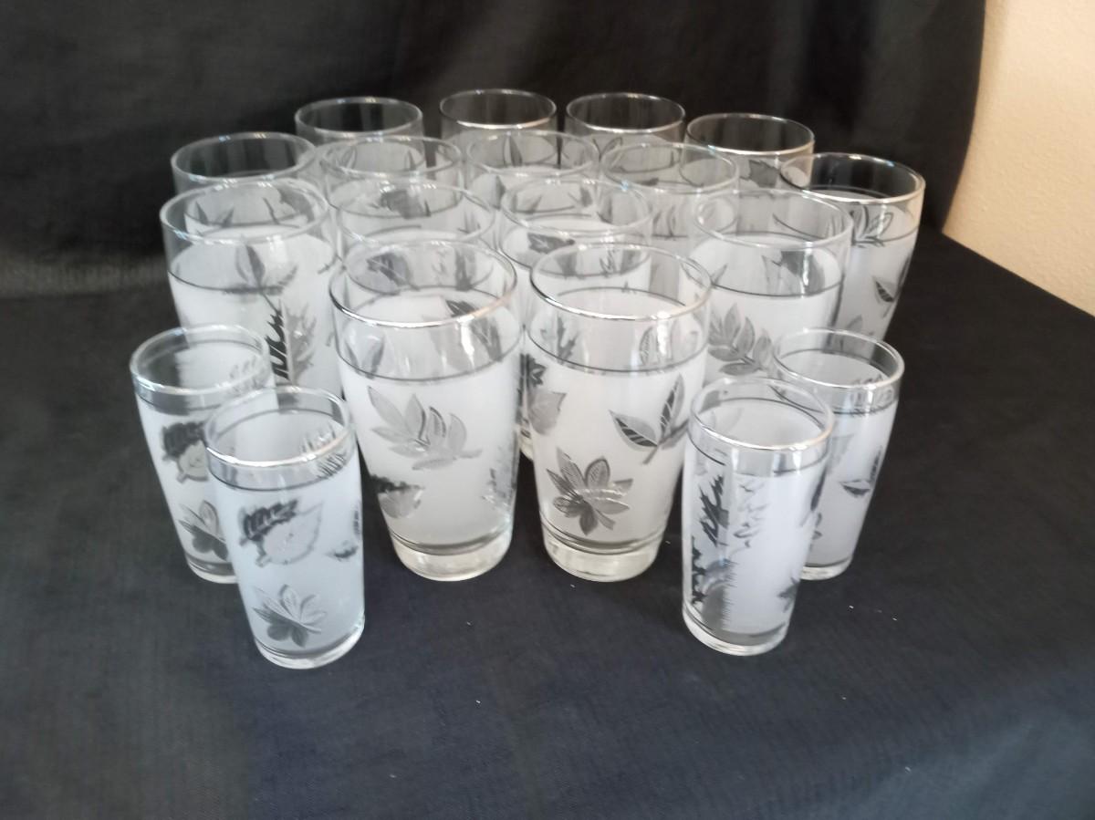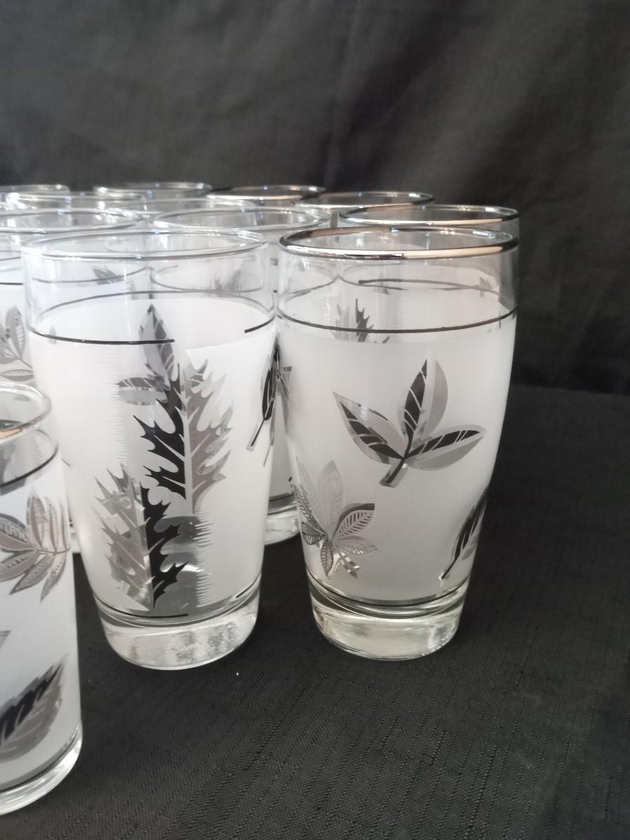 LOT 15 VINTAGE LIBBEY FROSTED SILVER LEAF DRINKING GLASSES