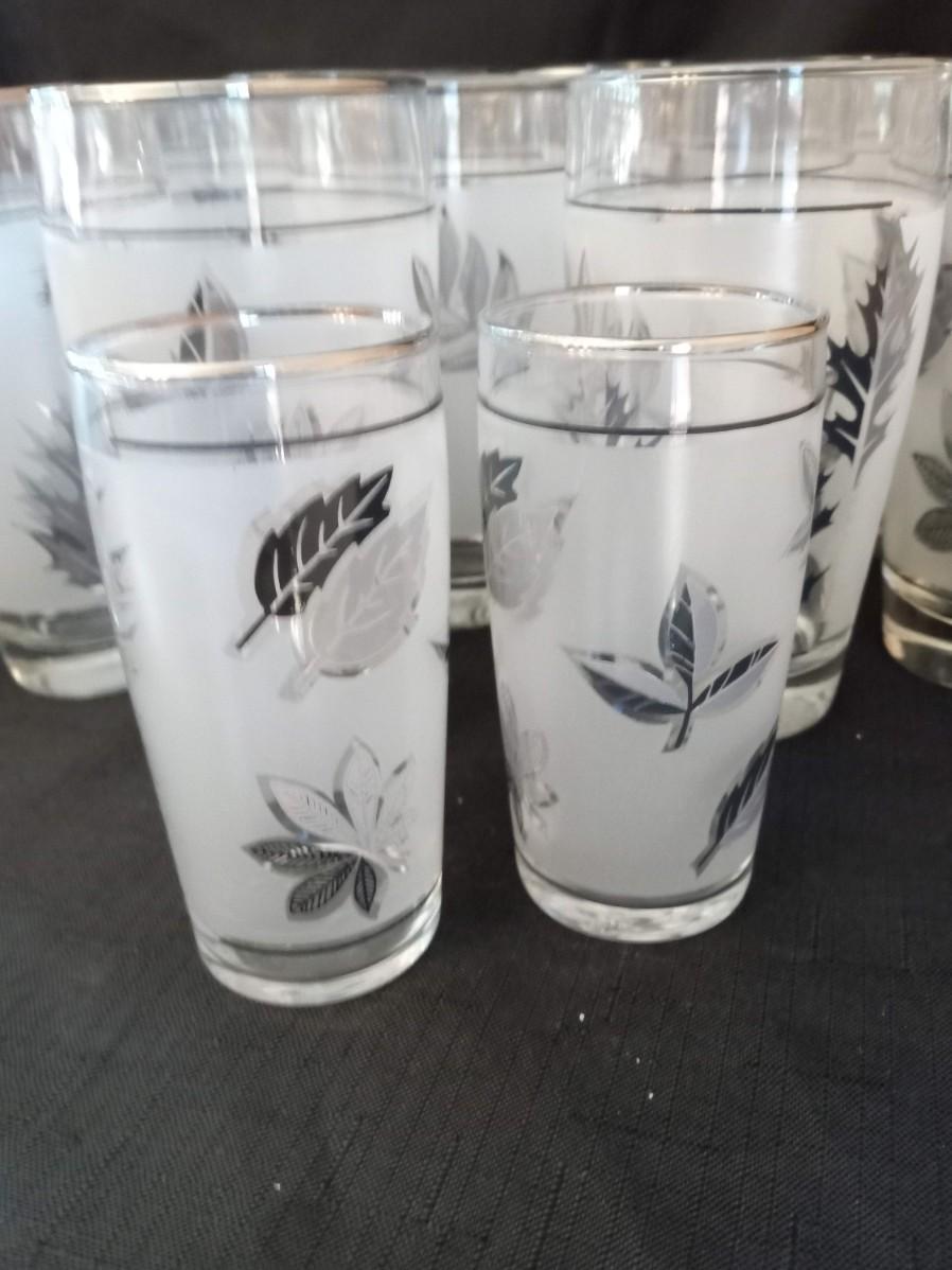 LOT 15  VINTAGE LIBBEY FROSTED SILVER LEAF DRINKING GLASSES