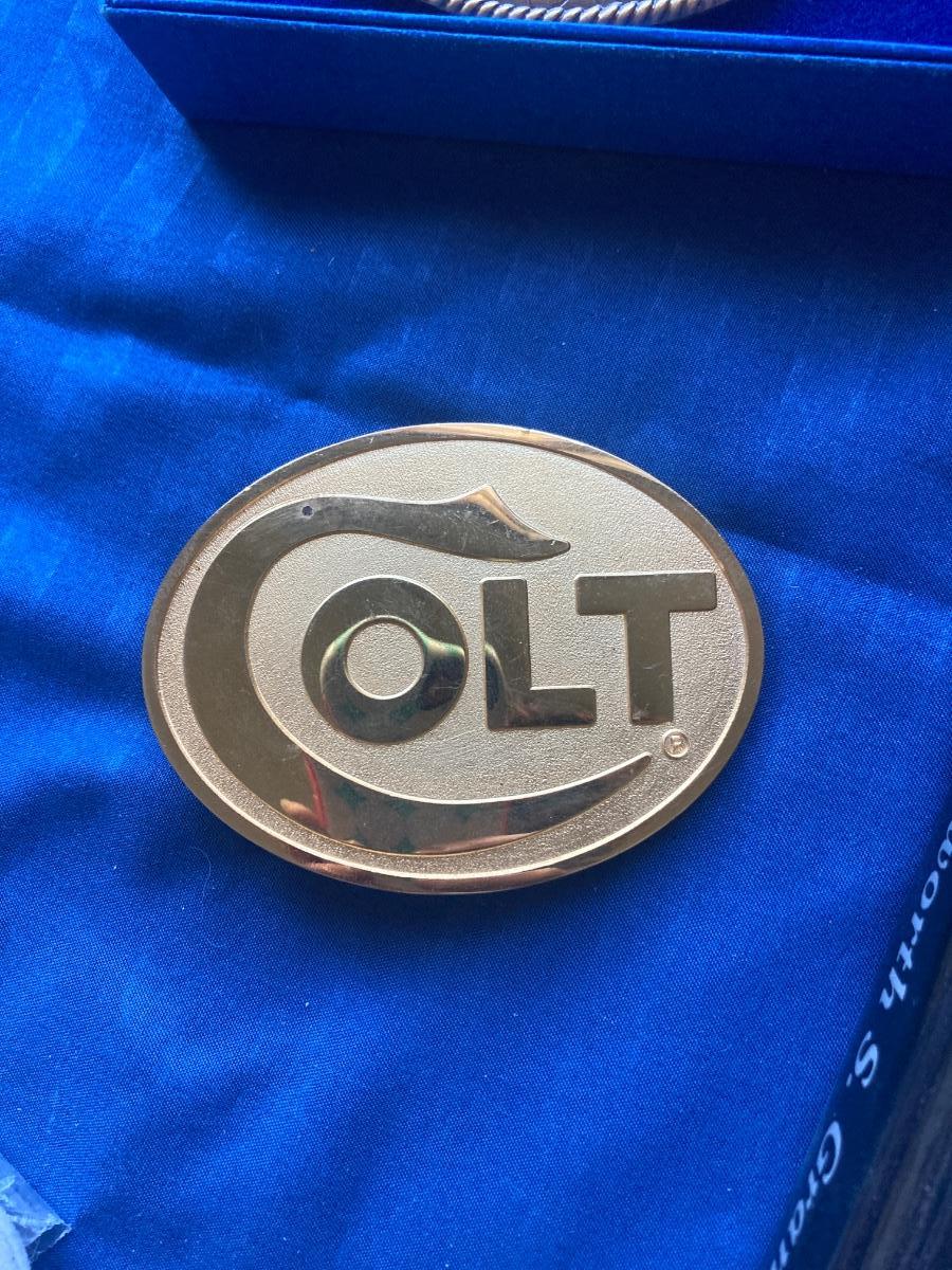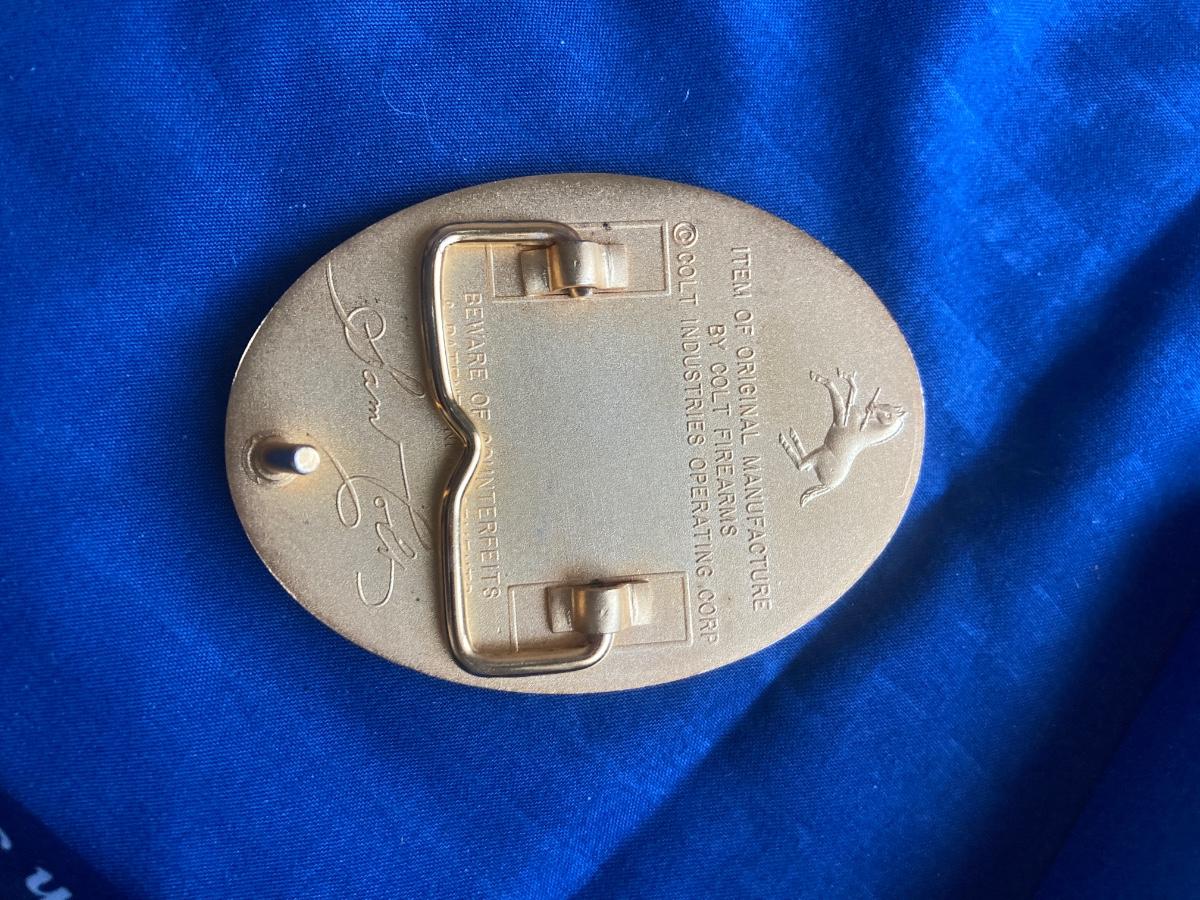 BOTH BELT BUCKLES ARE SIGNED BY SAM COLT AND ARE AUTHENTIC