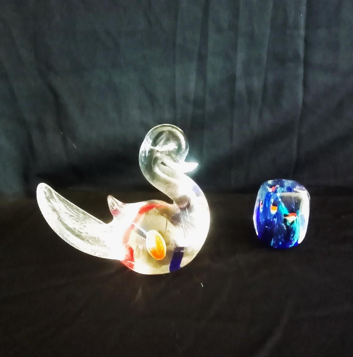 MURANO SWAN FIGURINE AND CUTE FISH PAPERWEIGHT