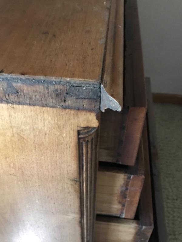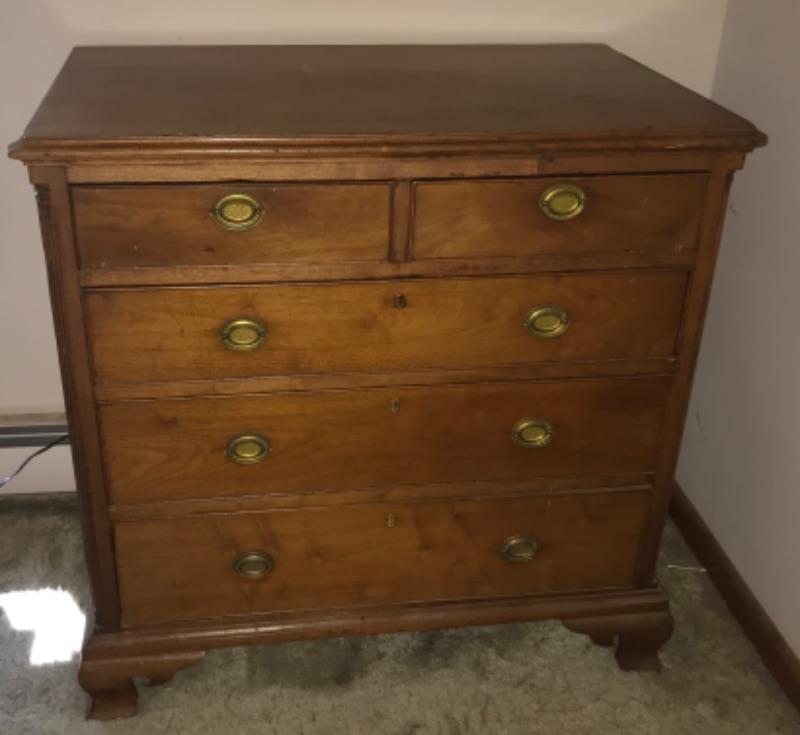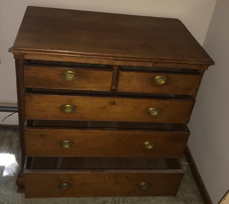 Has a few minor flaws (see pictures) all are easily fixable. Five drawers. Measures 3’2” high 3’2” wide and 23-1/2” deep