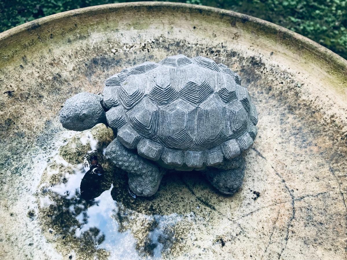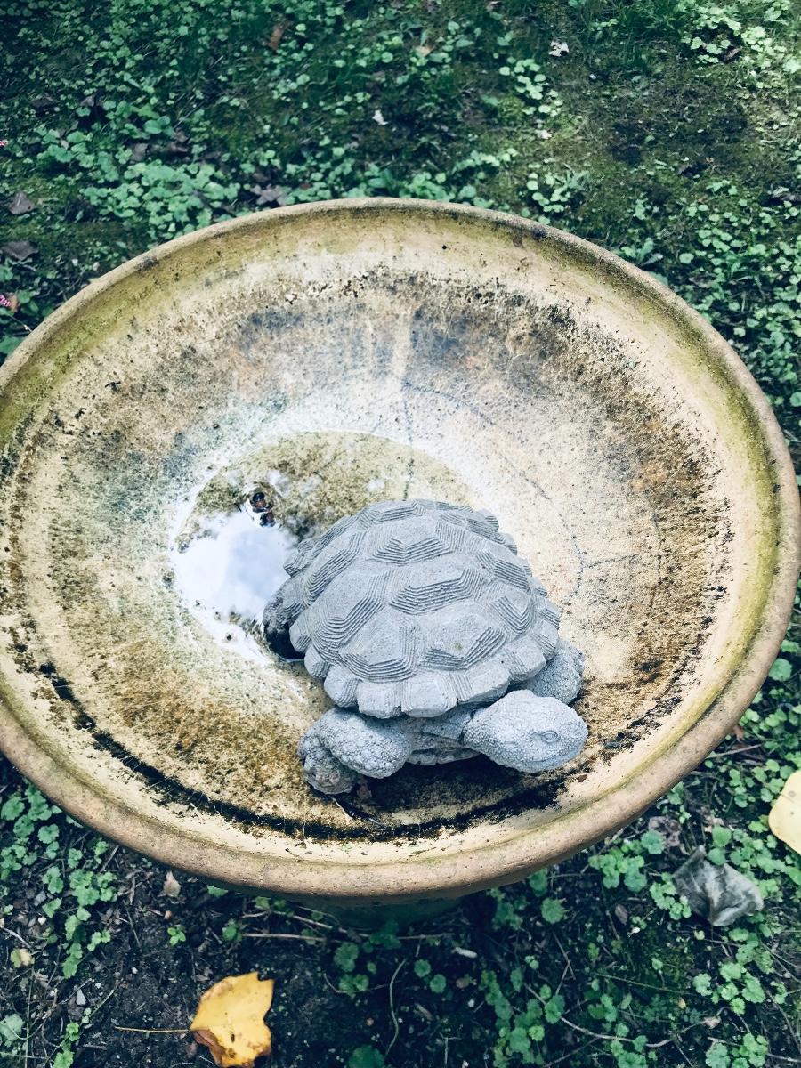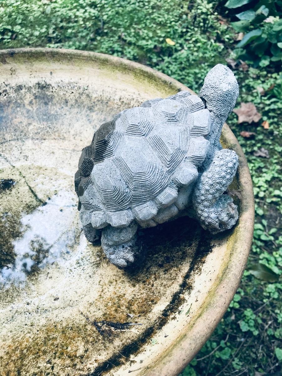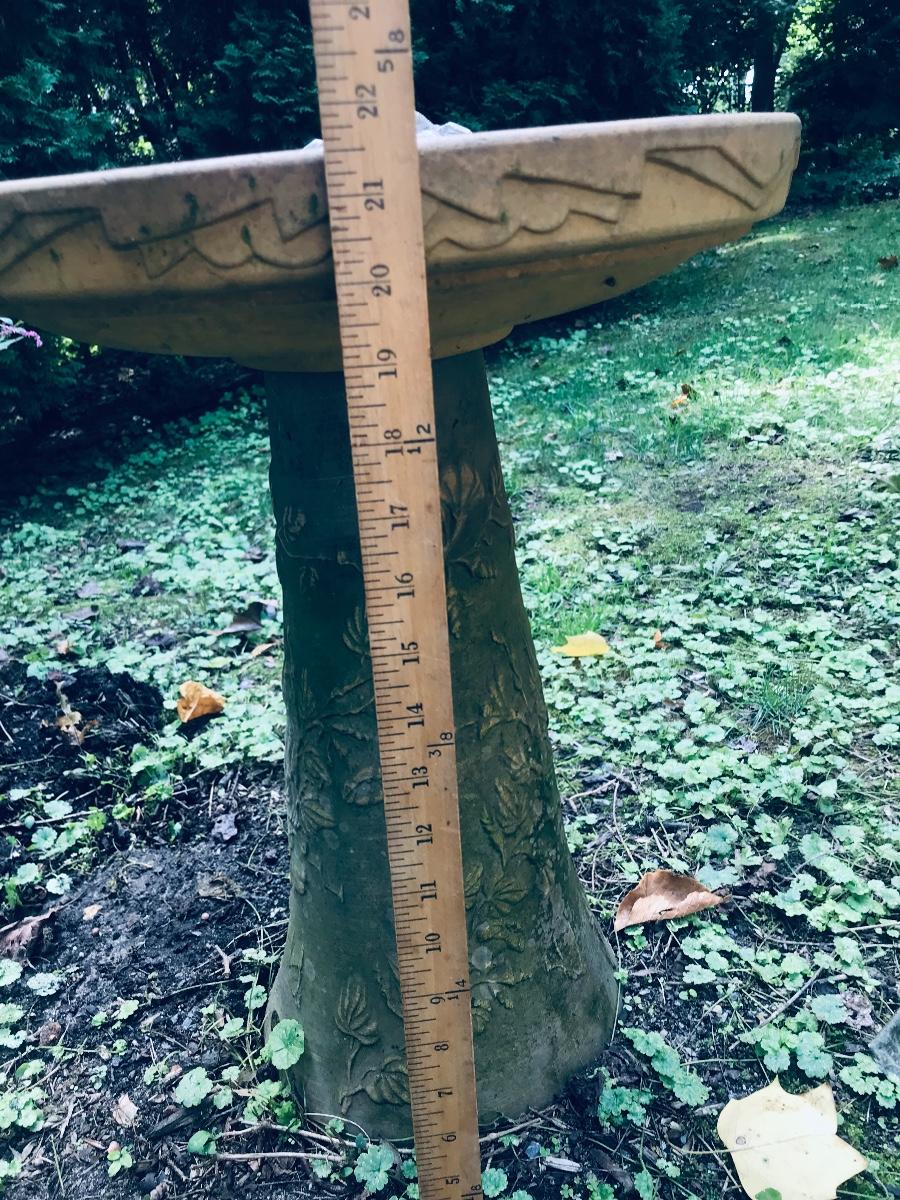 Birdbath with flower and leaf design, not cement, more like a heavy terra cotta, and a cement turtle. Please see all pictures as they are the best representation of the items. The pictures show condition, measurements if taken, and what is included in the lot. Due to the large amount that we photograph and the time frame, we are not always able to take measurements. All items unless noted, are pre-owned and have been used. If you purchased furniture, you must bring help. We do not allow one person to carry large furniture out on their own. Bring help, tools and a truck for the safety of our client’s homes, and your personal safety. Company policy. Thank you.