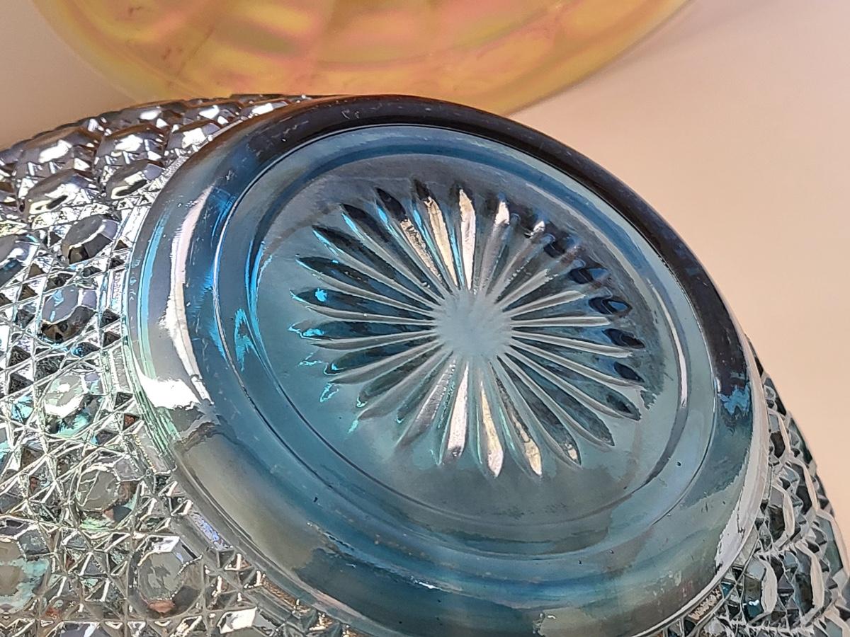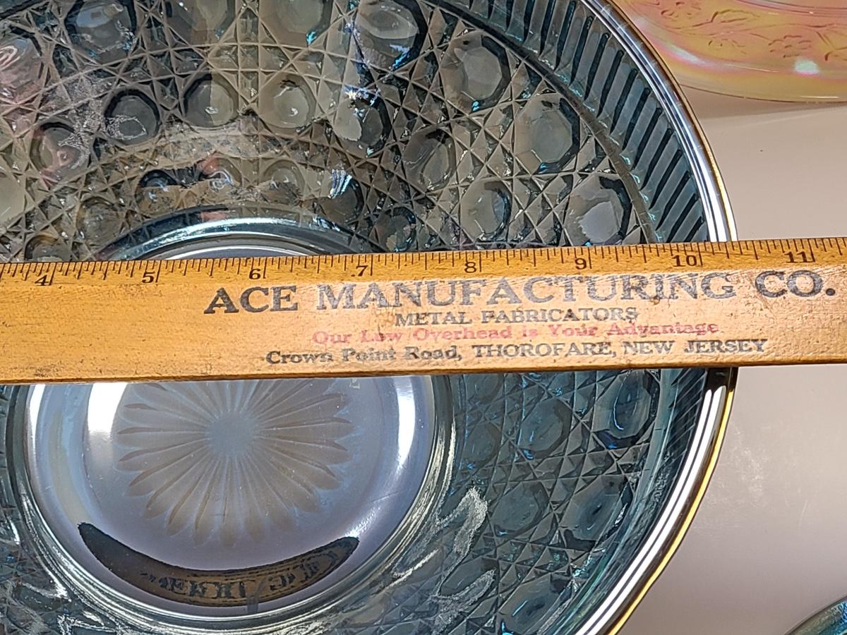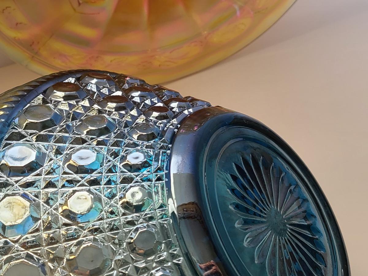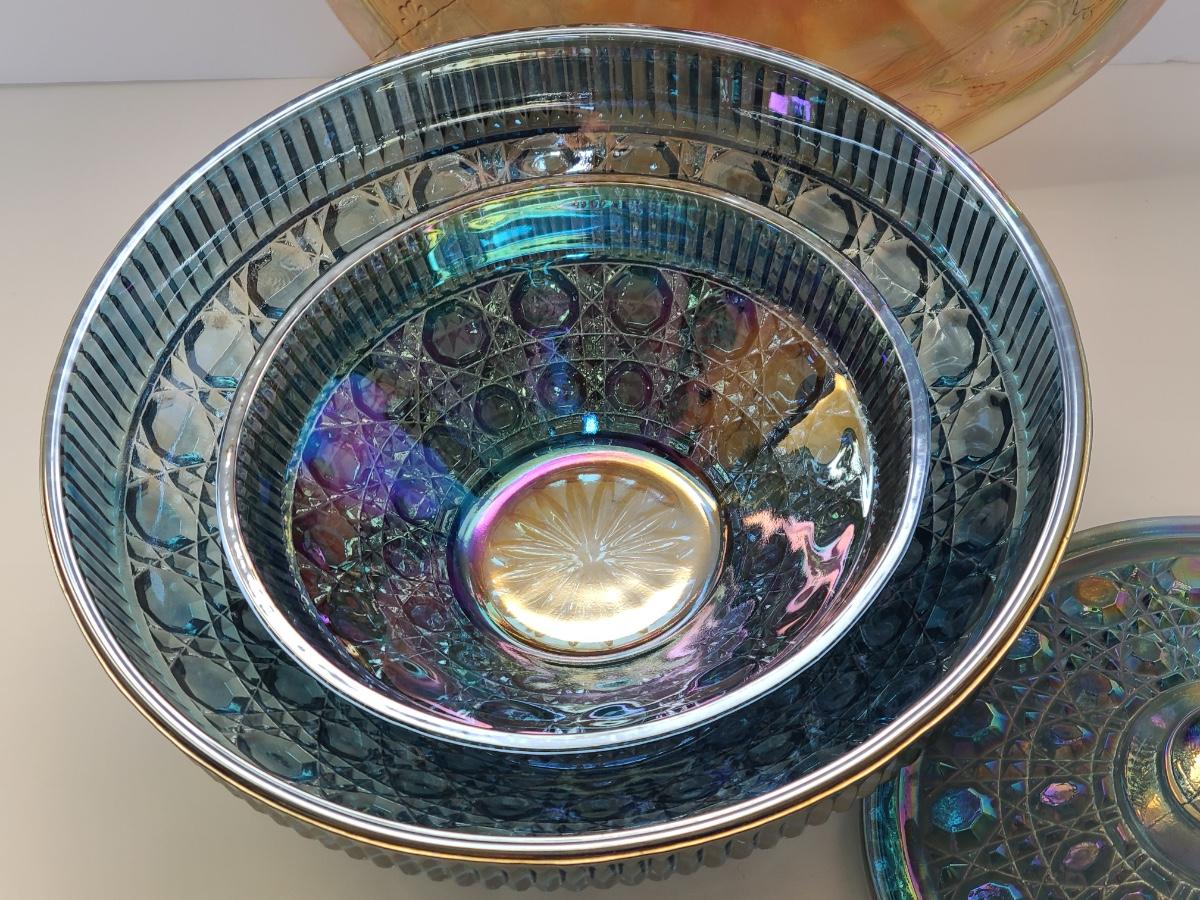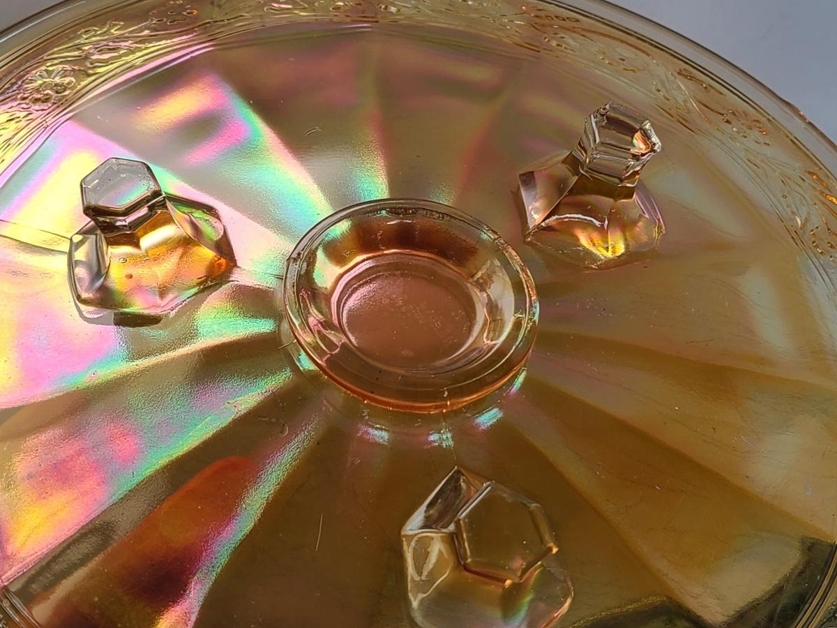 Lot 15: Carnival Glass Cake Plate, Covered Candy and More