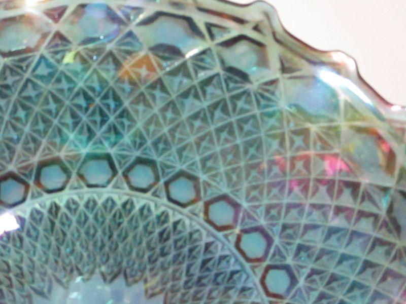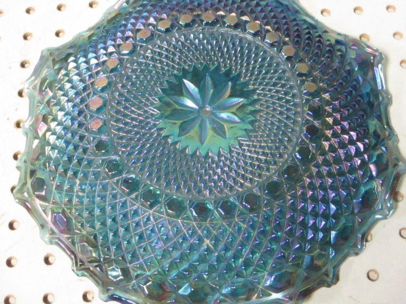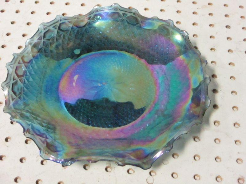 Lot 15 - Carnival Glass Blue Iridescent Dish Diamond Cut